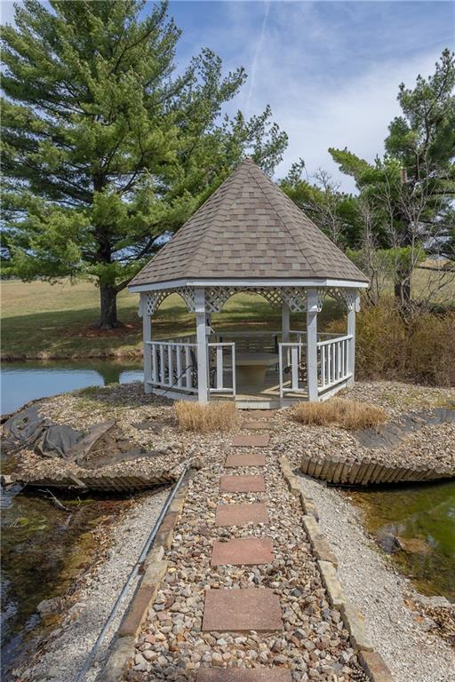 Magnificent one-of-a-kind setting! A long concrete driveway leads to this beautiful ranch home with an oversized 3-car attached garage and finished basement, all overlooking 18.13 acres with breathtaking views of a large fishing pond complete with gazebo. The back deck and patio create the perfect space for entertaining, featuring a built-in BBQ grill and peaceful surroundings. Home offers 4 bedrooms plus a non-conforming 5th bedroom, 3.5 baths, vaulted ceilings, and a unique fireplace in the living room, along with a second fireplace in the finished family room. The kitchen is well-appointed with abundant cabinetry, pantry, Corian countertops, and a casual dining area, plus a separate formal dining room large enough for gatherings. Property also includes an impressive 36x60 insulated outbuilding with multiple garage doors, a 35x14 heated and cooled workshop area, ample electrical, and air lines throughout. A second 36x24 outbuilding offers concrete floors, attic storage, and a lean-to for additional versatility. This property is truly a rare find offering space, function, and incredible views!