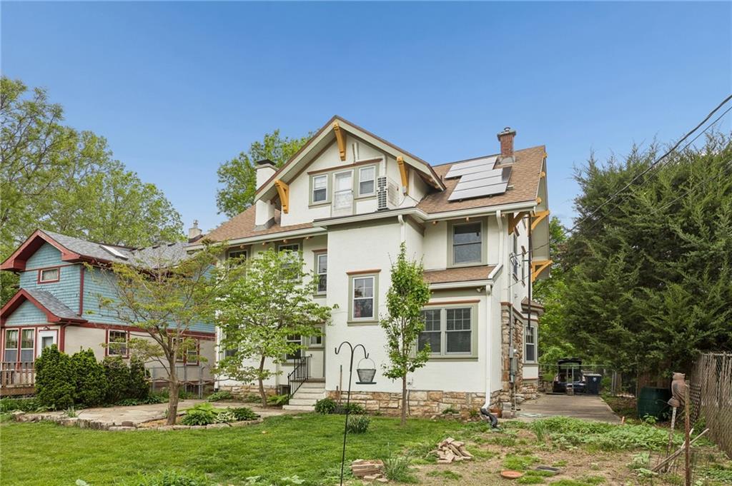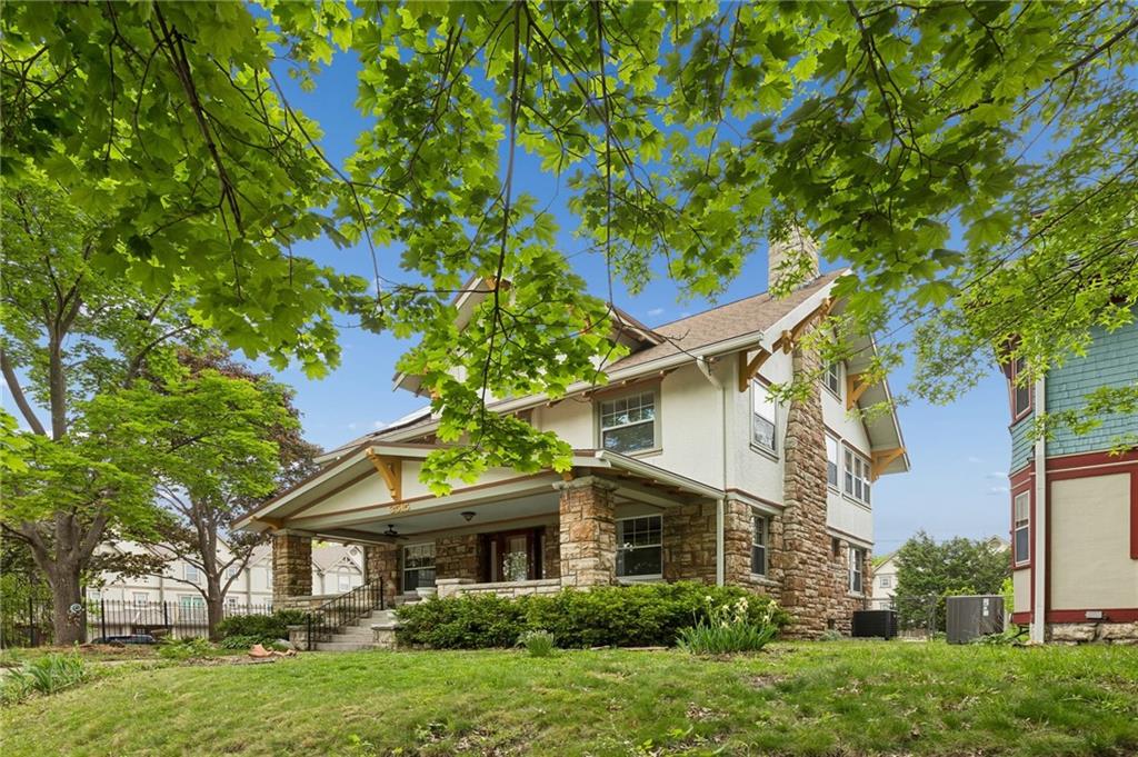 Own a piece of Kansas City history that has been transformed, yet preserved over the years. Current owners have brought this home back to life, saving the rich, beautiful quarter-sawn oak and mahogany woodwork in the home, the original stained glass windows and staying true to the Craftsman style of the 1900's in this Kansas City mid-town neighborhood. From the expansive front porch to the many gathering areas inside the home, you will find many spaces to connect with family and friends, converse around fireplaces, host family dinners in the formal dining room, work from home, enjoy hobbies, and even host short and long-staying guests in the third floor "apartment" complete with a dedicated kitchen, pantry, full bath, sitting area and two sunny bedrooms. Notable features include: a vestibule into the home with original tiled floors, two staircases adjoining the first and second floors, a very large primary bedroom w/fireplace, an updated main bath, three fireplaces, laundry conveniently located on the bedroom level and a half bath added on the first floor. Plenty of storage in the DRY basement that has space for a workshop area as well as a toilet & shower! The backyard is framed by the house and the detached garage with a flagstone patio for more outdoor gathering and gardening space. Many updates to the home's systems over the years make this an ideal home for lucky new owners. Don't forget about the streetcar that has a nearby stop, close to restaurants and coffee shops, making this corridor of the city one of the up and coming places to live!