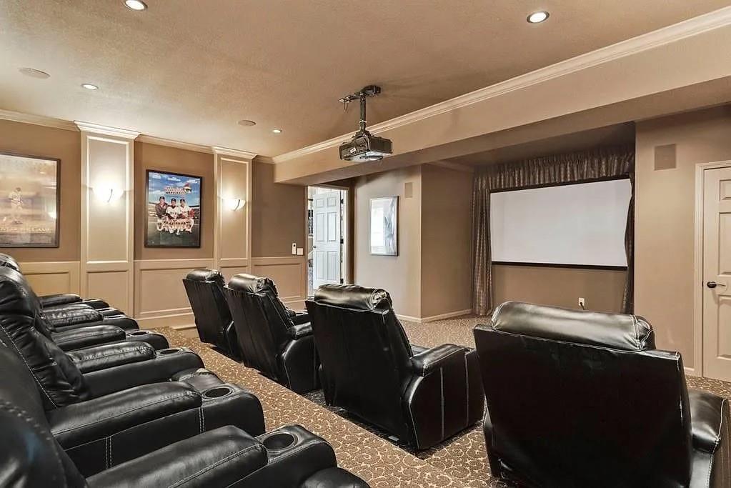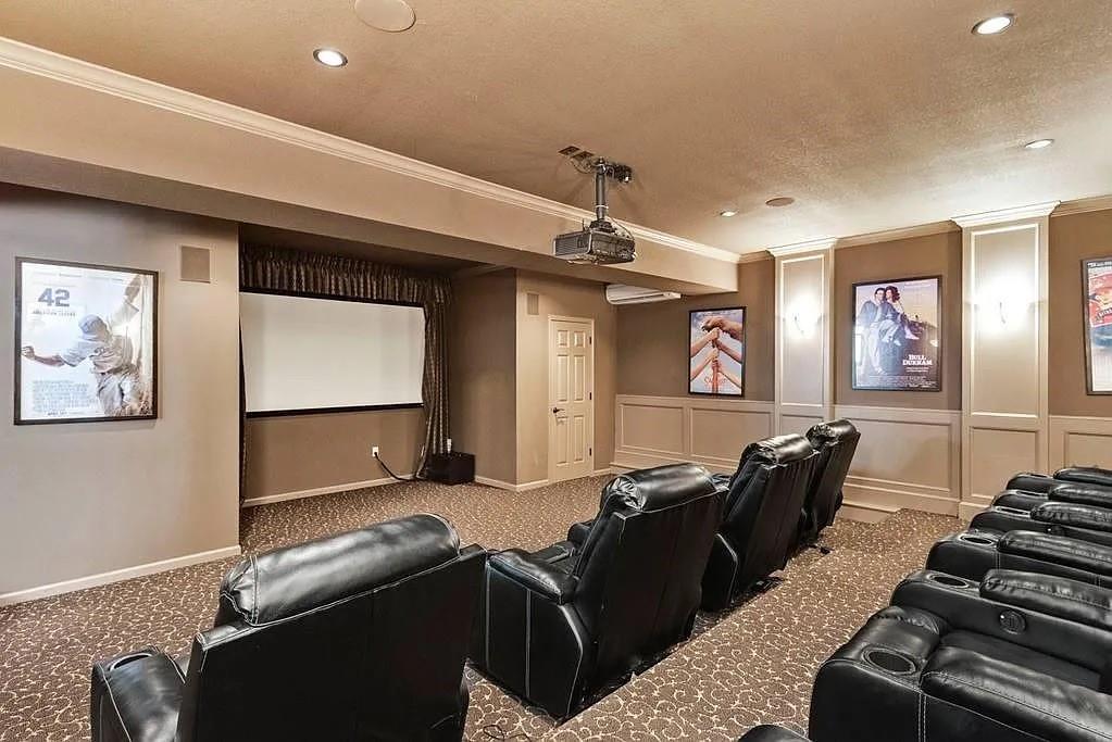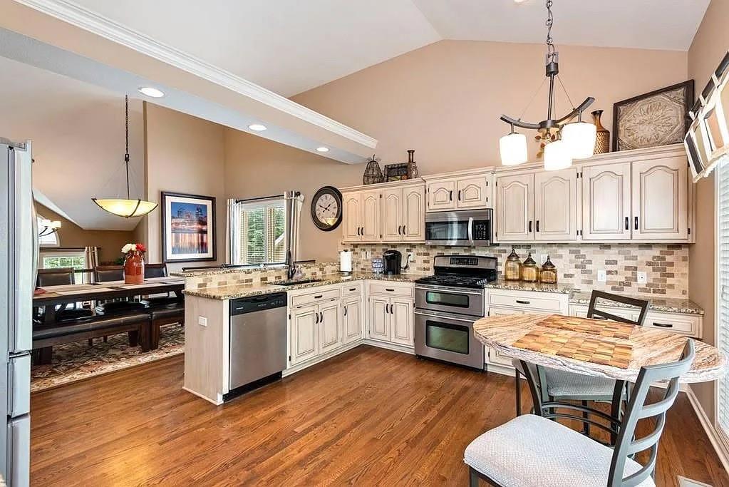This impressive split-level luxury home is located in the heart of the Zona Rosa Shopping District and just minutes from Kansas City International Airport. Offering premium amenities throughout, the home provides an ideal setup for comfortable living and entertaining. The spacious master suite features a private sitting area, tray ceiling with ambient lighting, and a spa-like ensuite bathroom with double vanity and deluxe steam shower. The two additional bedrooms each include king beds and private bathrooms with walk-in showers. The open living area features a striking gas fireplace beneath soaring high ceilings that create a bright, spacious feel. The gourmet kitchen is fully equipped appliances, granite countertops, a breakfast bar, and flows seamlessly into the dining space. Downstairs, enjoy the custom bar with sink, dishwasher, full-size fridge, and TV, adjacent to a dedicated home gym with treadmill, all-in-one machine, and mirror walls. The highlight is the fully converted garage transformed into an impressive 8-seat home theater with a large screen and premium surround sound. Outside, relax on the raised deck with BBQ or the covered patio with fire pit, overlooking the backyard and Zona Rosa views. All three bedrooms have luxury king beds and private bathrooms. This fully furnished home includes all appliances and furniture and presents a perfect opportunity for an investor. All room sizes, square footage, lot dimensions, utilities and tax info to be verified by buyers agent.