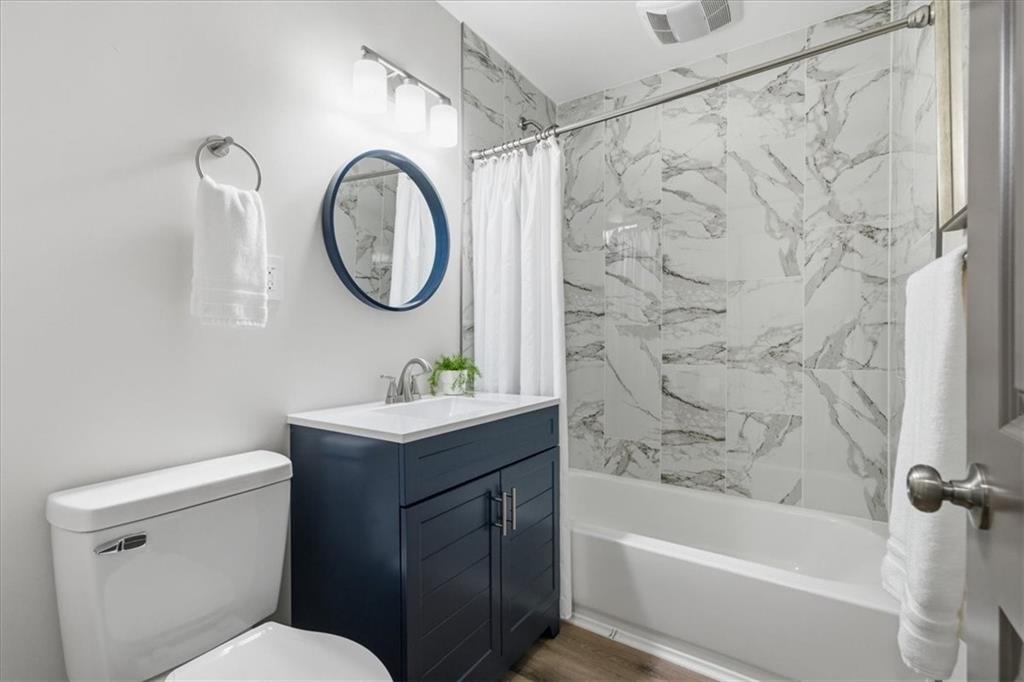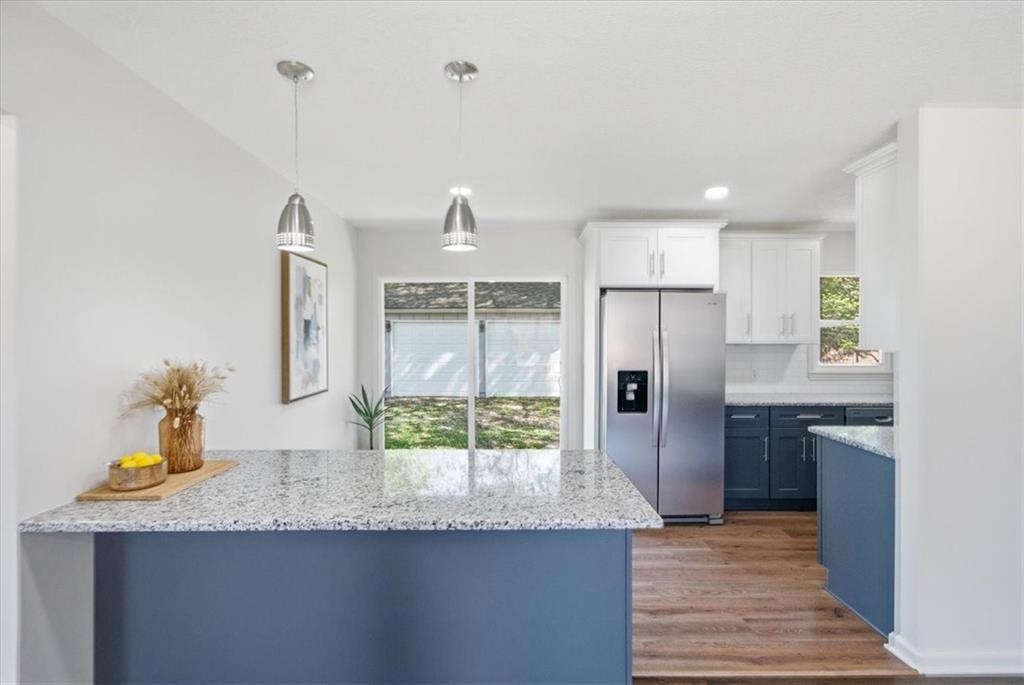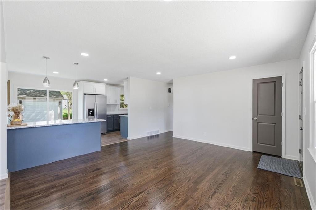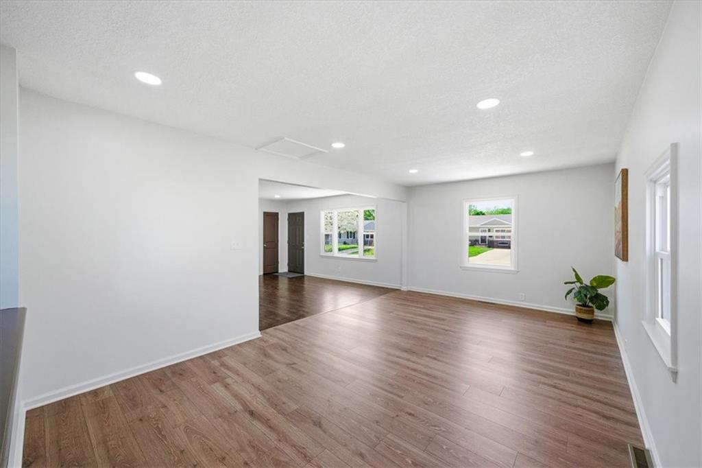 Adorable FULL remodel with all the big-ticket items DONE! From the moment you arrive, you’ll love the fresh exterior paint, all-new interior paint, new windows, and brand-new roof. Step inside to find refinished hardwoods, LVP flooring throughout, and a stunning all-new kitchen featuring granite countertops, gorgeous cabinetry, an island, stainless steel appliances, and a refrigerator that stays. The bathroom has been completely updated with beautiful tile finishes, and new doors add a fresh touch throughout. The finished basement adds valuable living space with a family room, full bath, non-conforming fourth bedroom, laundry, and generous storage. Mechanical updates include a new A/C unit, a 200-amp electrical panel, and an updated plumbing stack. Furnace and water heater appear newer; ages unknown. Bonus: oversized detached 3-car garage/shop with new garage doors, exterior paint, and new roof—perfect for extra storage or projects. This one is truly move-in ready!