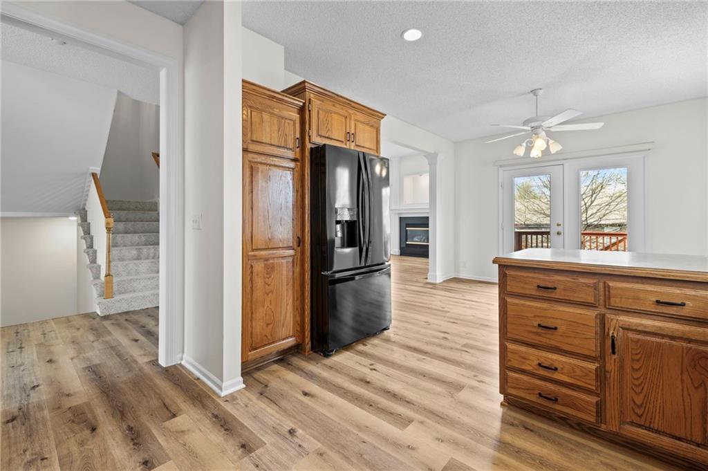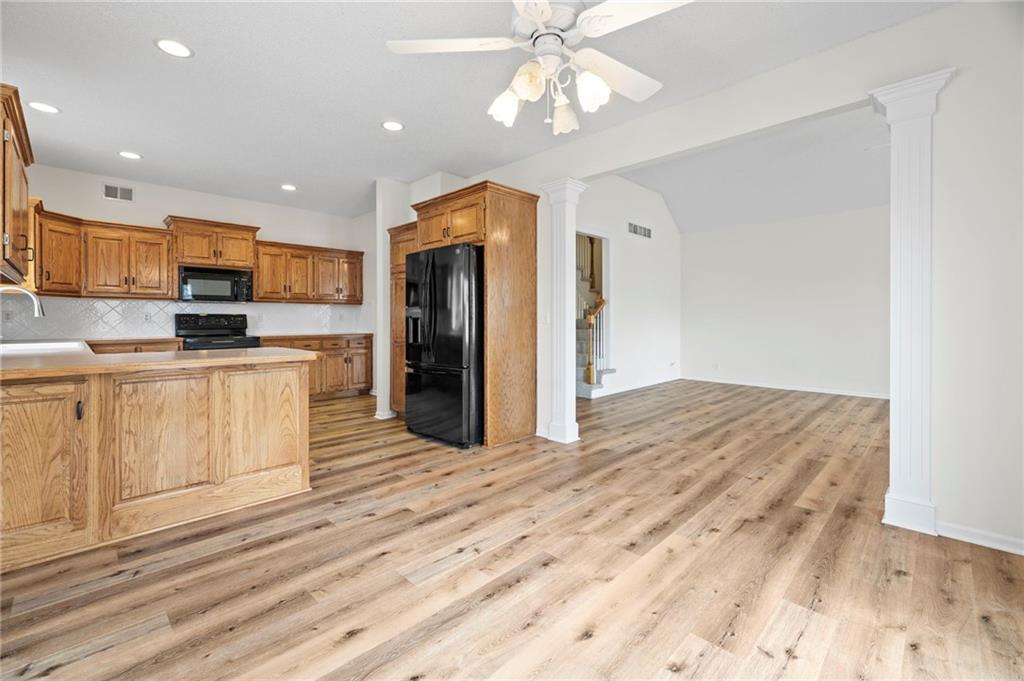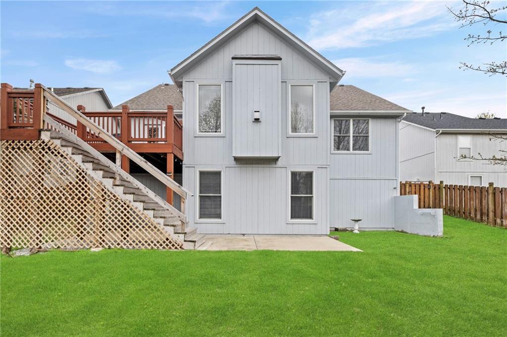Welcome to this beautifully updated custom 1.5-story home in the highly sought-after Bridlewood Downs subdivision! With 4 bedrooms, 3.5 baths, and over 3,800 sq ft, this meticulously maintained home offers space, style, and functionality. You’ll love the eye-catching stone exterior, gleaming hardwood floors, fresh paint, and much more. The bright, open kitchen features hardwood floors, a large pantry, and abundant cabinet space—perfect for everyday living and entertaining. Step out onto the newly stained deck for morning coffee or evening BBQs. The main-floor primary suite offers comfort and convenience with double vanities, along with a well-equipped laundry room (washer, dryer, sink, and freezer included). The finished walk-out lower level is an entertainer’s dream—complete with a second kitchen, full bath, pool table area, and a versatile enclosed room ideal for a home theater, guest suite, or private retreat. Plus, enjoy plenty of additional storage space. Relax outdoors in the fully fenced backyard with a lower-level patio. A newer roof with upgraded Owens Corning Duration Storm Shingles adds peace of mind. Located within walking distance to Prairie Center Elementary, Mission Trail Middle School, and Olathe West High School, with quick access to shopping, dining, and Olathe Lake—this home truly has it all!