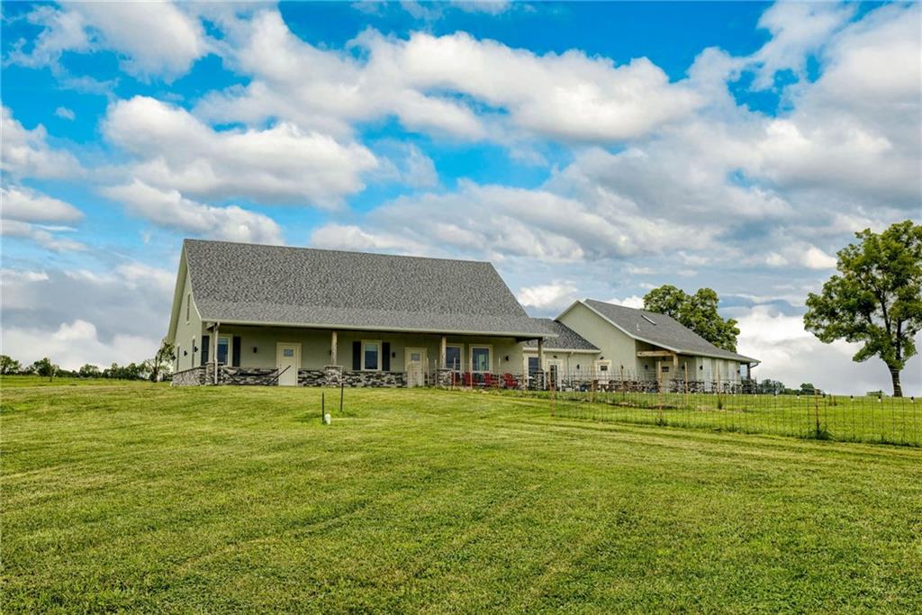 Discover the convenience of this picturesque estate located just off exit 40 in Lathrop MO. This newly constructed home offers over 4400 square feet of livable space and just over 5 acres with and livestock facilities. Ideal for business owners, large families, or those wanting a quick commute to Kansas City or the airport. The stunningly designed home offers 4 bed, four bathrooms, two fireplaces and a massive great room perfect for family living and entertaining guests. Inside there is a blend of marble and high end flooring that adds elegance and durability throughout. The heart of the home features a state of the art kitchen with an 11 foot custom granite island, walk in pantry, and personalized kitchen cabinetry. The expansive concrete driveway and parking pad outside the 4 car garage provides extra parking for additional guests. Additionally the main floor offers oversized hallways and doorways making it completely handicapped accessible. Outside the home there is a 30x40 barn with a fully fenced paddock with water spigots already suitable for livestock or horses. Additional highlights include a vault style safe room, a dedicated office space and an integrated Generac backup generator, ensuring your home remains comfortable and functional in any situation. This property seamlessly combines luxury security and practically practicality making it a true sanctuary. homeowner is also willing to sell adjoining acreage for an cost. Don't miss the opportunity to own this remarkable estate just 30 minutes from Kansas City and the MCI Airport. Schedule your showing today Inexperience all this stunning home has to offer!