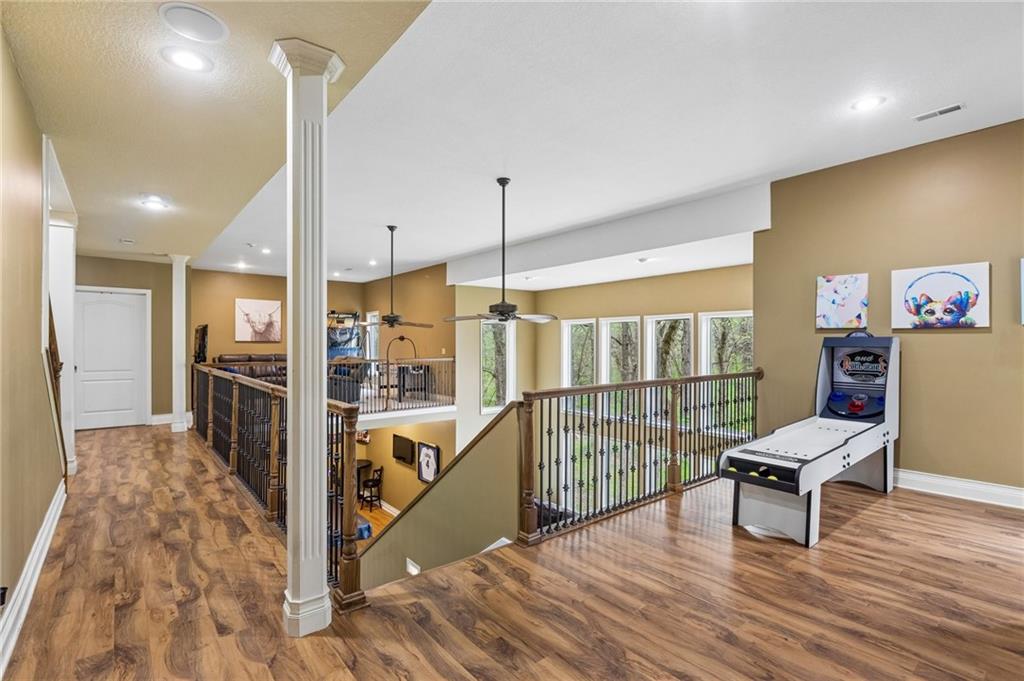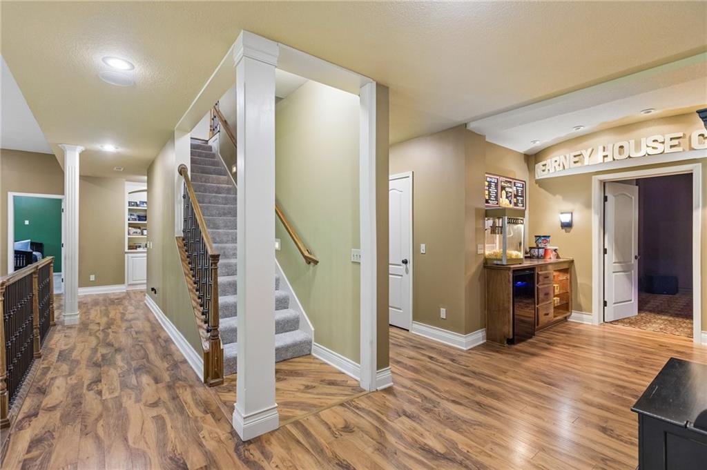 Private wooded views. Soaring ceilings. Your own in-home theater with concessions. This is the kind of home that was designed to be experienced—not just lived in. Featuring a home gym, a one-of-a-kind floor plan like no one you know has, and multiple decks perfectly positioned to take in the views—this is true luxury living built for entertaining and everyday enjoyment. From the moment you walk in, the scale and intention of this home are undeniable. Tall ceilings and expansive windows draw your eyes straight to the surrounding trees and natural views, creating a sense of privacy and calm that’s hard to find. At the heart of the home, a unique mid-level living design sets the stage for what this property does best—entertain. Whether you’re hosting movie nights in your dedicated home theater complete with its own concession area, gathering with friends across multiple living spaces, or simply enjoying a quiet evening taking in the views, every detail of this home was built for comfort, connection, and elevated everyday living. With over 5,600 square feet, 5 bedrooms, and 4 full bathrooms, there’s room for everyone to spread out while still feeling connected. The finished lower level adds even more flexibility for entertaining, recreation, or creating the perfect guest retreat. Step outside and the experience continues. Nestled on nearly 2 private acres in the desirable Fox Run community, this property offers a rare combination of open yard, mature trees, and a peaceful creek that winds through the back of the land. From mornings on the deck to evenings around the firepit, this setting invites you to slow down and truly enjoy where you live. Located in the highly sought-after Kearney School District, you’ll enjoy the convenience of nearby amenities while coming home to a space that feels like a retreat. Homes like this—where thoughtful design, privacy, and lifestyle come together—are rare. This is your opportunity to own something truly special.