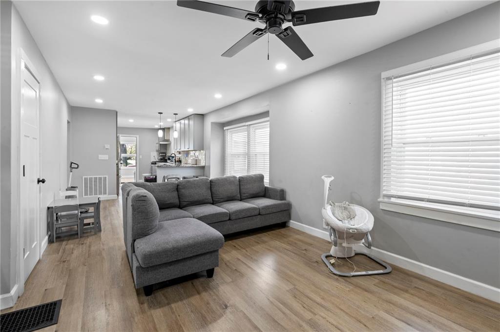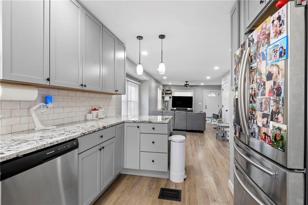 Step into this charming, fully refreshed bungalow that’s bursting with character and ready to welcome its new owners! Featuring three bedrooms and one beautifully updated bathroom, this home blends classic charm with modern touches. Enjoy stylish vinyl plank flooring throughout and an inviting open-concept kitchen complete with stunning granite countertops and sleek stainless steel appliances—perfect for everyday living and entertaining. Just off the kitchen, you’ll find a cozy porch that doubles as a mudroom and laundry space for added convenience. Situated on a spacious corner lot, there’s plenty of room to relax, play, and enjoy the outdoors. This home is the perfect mix of comfort, style, and personality—come see it for yourself!
