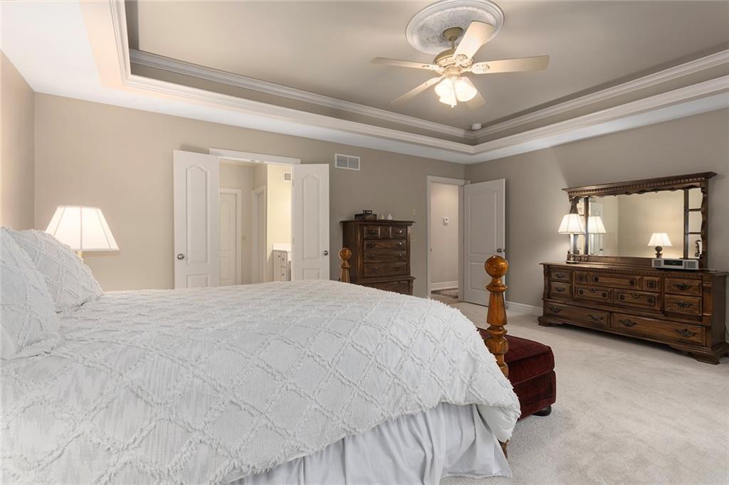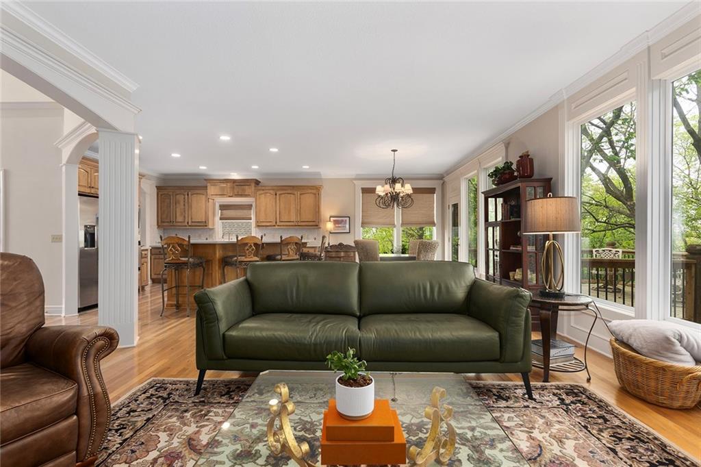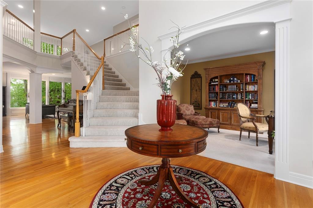 Stunning one-owner custom-built 1.5-story home backing to heavily treed greenspace, offering privacy and picturesque views! With over 4,000 sq ft, this thoughtfully designed home features a bright, open floor plan perfect for everyday living and entertaining. The impressive two-story entry showcases upgraded trim work throughout and opens into a spacious great room complete with built-ins and a cozy fireplace. The gourmet kitchen is a dream, featuring a large walk-in pantry, butler’s pantry, and seamless flow into the formal dining room. The main-level primary suite is a true retreat with a vaulted ceiling, wall of windows, and generous space to unwind. A first-floor office adds convenience and flexibility. Upstairs, you’ll find a spacious loft area and generously sized secondary bedrooms—all with walk-in closets. Additional highlights include 3.5 baths, an oversized laundry room, and a huge unfinished basement ready for your personal design and expansion. Located in The National Golf Club community in the heart of Platte County, this home also features a brand new architectural shingle roof. Don’t miss this exceptional opportunity to own a beautifully maintained home in a highly sought-after location! This home has been meticulously maintained.