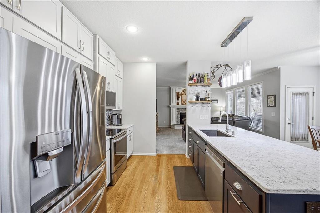 Stunning Updated 2-Story Home with Finished Basement! Welcome home to this updated 4-bedroom, 3.5-bath home in the highly desirable Megan Valley subdivision—a quiet, family-friendly neighborhood just minutes from Celebration Park and Gardner Edgerton schools. The open main level is designed for both everyday living and entertaining, featuring a spacious living room with fireplace, main level office, a cozy hearth room with a second fireplace with builtins and a generous dining area. The remodeled kitchen is the heart of the home, showcasing quartz countertops, LG appliances, abundant cabinetry, and modern lighting. The main level laundry room and mudroom are off the garage, and updated half bath add convenience and function, while fresh interior and exterior paint and new carpet create a move-in-ready feel. Upstairs, you’ll find four spacious bedrooms and three full baths, including a Jack-and-Jill bath and a private en suite for the fourth bedroom. The luxurious primary suite offers a large bedroom with a sitting area and third fireplace, plus a spa-like bath featuring a Jacuzzi tub, separate walk-in shower, and a generous walk-in closet. The finished basement provides flexible living space—perfect for a rec room, home gym, or media area—along with ample storage. Step outside to enjoy the newer composite deck with stairs, charming gazebo, and patio area—all overlooking a private, backyard that backs to a peaceful tree line with no homes behind. It’s the ideal setting for relaxing evenings, kids at play, or entertaining guests. Additional highlights include a high-impact composite roof (replaced in 2020) and sprinkler system and covered deck. Don’t miss this opportunity to own a move-in-ready home in a welcoming neighborhood with a true sense of community, excellent schools, and easy access to parks and local amenities.