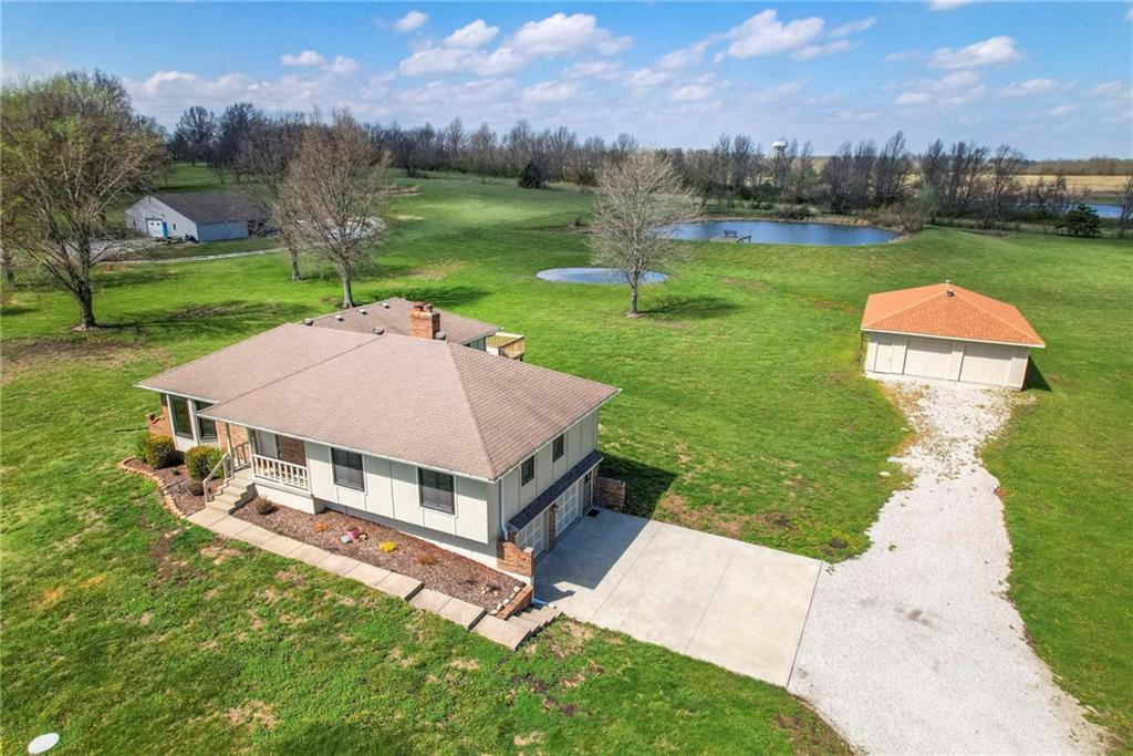 Situated on 4.28 acres, this versatile property offers beautiful outdoor features and plenty of space to enjoy country living. The large stocked pond with dock is perfect for relaxing or fishing, and the 35 x 40 outbuilding includes a new roof, office space, concrete floor, and electricity — ideal for a workshop, storage, or hobbies. Inside, the home features an open floor plan with plenty of room to spread out. The main level includes a formal dining room, living room with fireplace, kitchen, and a large family room that opens to a spacious new deck. Bedrooms and bathrooms on the main level have been recently updated, and there is a convenient main-level laundry room. All windows were replaced in 2019. The finished walkout lower level provides even more living space, including a large family room, second laundry room, and garage access. Two large non-conforming bedrooms downstairs offer great flexibility for guests, office space, or hobby rooms. With generous indoor and outdoor living space, this property offers room to live, work, and play — all in one place. Buyers and buyer's agent to confirm taxes, room sizes, all information and school districts. Professional photos coming 4/2