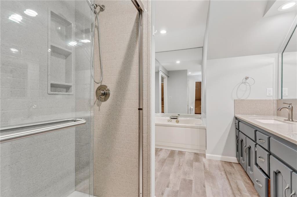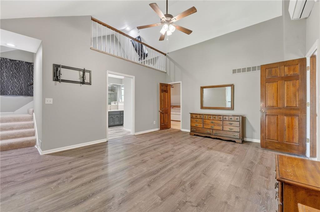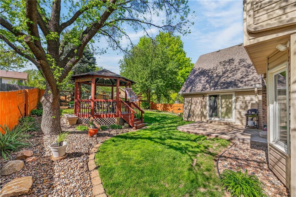 Beautiful 4-bedroom, 4 full bathroom 1.5-story home on a 0.29-acre corner lot in a cul-de-sac, just a short distance to the community pool. Step inside to the main level that features a spacious kitchen with bay window breakfast area, formal dining with vaulted ceilings, a cozy hearth room with fireplace and skylights, convenient laundry, plus 2 bedrooms and 2 full bathrooms. A show-stopping great room with soaring vaulted ceilings, a dramatic wall of windows, and a curved staircase leading to a balcony above. Upstairs, the private primary suite offers a spa-like feel with a large walk-in closet, tall ceilings and unique loft space, while the second bedroom includes its own en suite bath. Enjoy your own backyard retreat with a fully fenced yard, gazebo with electricity and ceiling fan, and French drains for added peace of mind. Style, space, and standout details at every turn. From its eye-catching design to its inviting outdoor spaces, prime cul-de-sac setting, and walkable access to community amenities, this home blends comfort, style, and practicality into one unforgettable package.