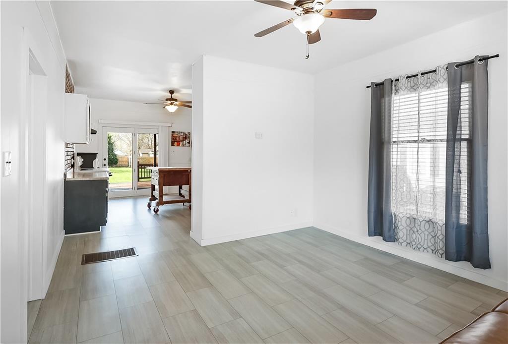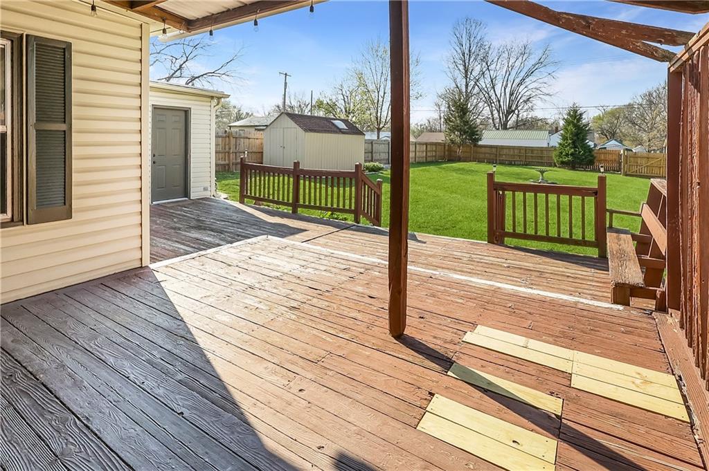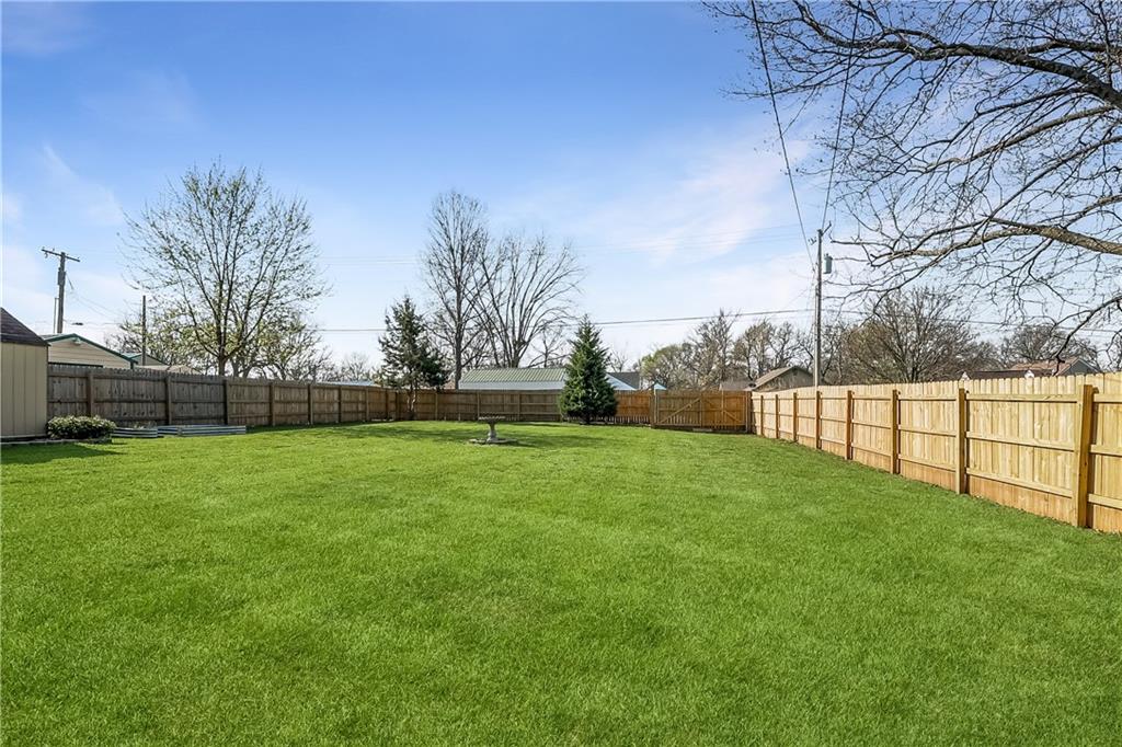 Great for first-time buyers or those looking to downsize! This cute 2-bedroom home offers one-level living with an attached garage. The pearl of the home is the spacious backyard, complete with a 6-ft privacy fence—perfect for relaxing or entertaining. Rear parking, a storage shed, all on a large lot. All appliances stay, and the eat-in kitchen adds to the home’s charm. Newer heating and cooling systems provide added comfort and peace of mind. Ideally located near the Harrisonville Square, parks, and schools.