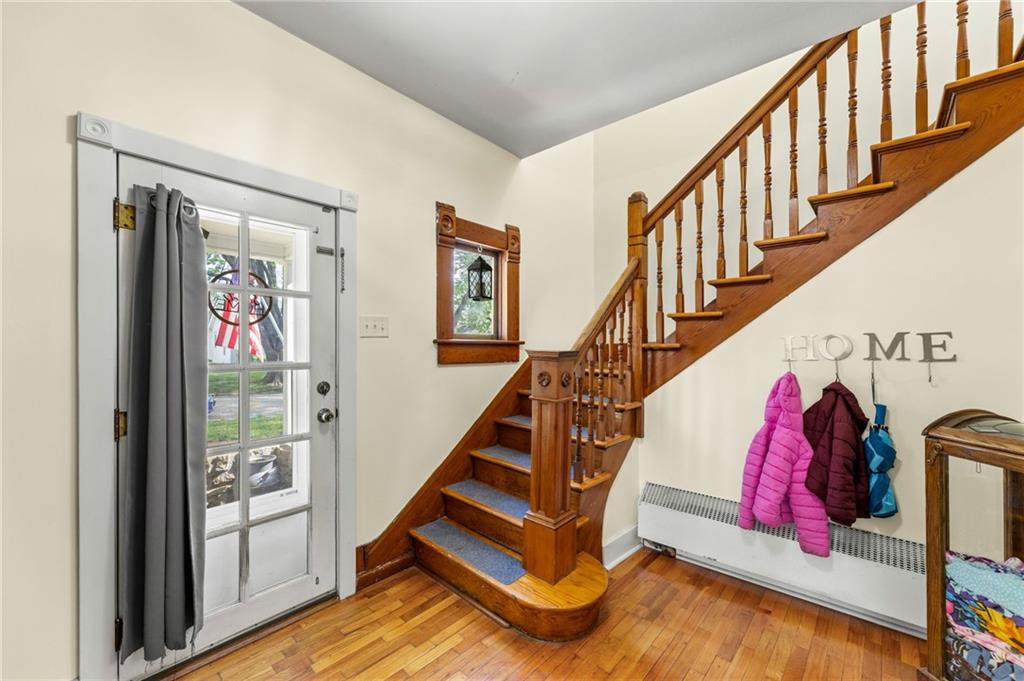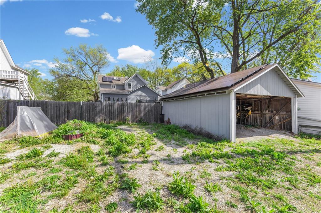 This stunning 4 bedroom, 2 bathroom home perfectly marries historic charm with modern sustainability, offering a rare opportunity to own a piece of architectural beauty. From the moment you step inside, you are greeted by the warmth of original woodwork, gleaming hardwood floors, and a magnificent original staircase that serves as a focal point of the home. The main level features a sprawling living room centered around a cozy gas fireplace, flowing seamlessly into a formal dining room designed for memorable gatherings. The kitchen is a chef's delight, boasting freshly painted cabinetry complemented by elegant new granite countertops. For year-round enjoyment, the sundrenched four-seasons room provides the ideal backdrop for entertaining guests or finding a quiet moment of repose. Practicality meets innovation with the inclusion of a newer HVAC heat pump and solar panels, ensuring exceptional energy efficiency and lower utility costs, including newer windows. The floor plan is thoughtfully designed for flexibility, offering a convenient main-floor bedroom while the upper level houses three additional spacious bedrooms and a full bathroom. Outside, the property continues to impress with a 2 car detached garage and a privacy fenced yard that offers a secluded oasis for relaxation. Situated in a prime location, this home is just a short stroll from the vibrant and historical Paola Town Square, where you can enjoy local shops, dining, and a variety of community events held throughout the year. This property isn't just a house; it's a lifestyle upgrade nestled in the heart of a charming community.