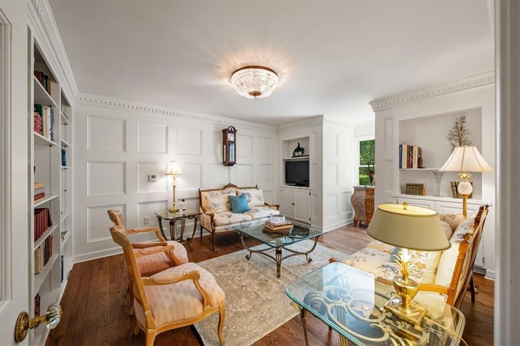 Experience maintenance-provided luxury in this fabulous 1.5-story home located in Corinth Downs. Boasting over 3,200 sqft of refined living space, a brand-new DaVinci roof, and zoned heating and cooling, this 3-bedroom, 3.5-bath home perfectly balances traditional elegance with a spacious, airy floor plan. The main level greets you with a grand foyer and a formal dining room featuring a tray ceiling and classic wainscoting. The soaring, vaulted living room, anchored by a stately fireplace and wet bar, is bathed in natural light, offering a seamless flow for entertaining. The kitchen is a chef's delight, featuring crisp white cabinetry, sleek black granite countertops, new stainless steel appliances, and a charming breakfast nook. Retreat to the main-floor primary suite, complete with a generous walk-in closet and a spa-like ensuite bath finished in exquisite floor-to-ceiling marble, featuring a glass-enclosed shower and a deep soaking tub. Main floor laundry is also available for your convenience. The upper level offers two additional bedrooms and a full bath, perfect for guests, a playroom, or a quiet home office. The expansive lower level significantly increases the home's footprint, offering a large recreation room with a second wet bar and dedicated dining area, an office, and a fourth non-conforming bedroom with a full bath. You will also find a secondary kitchen with an additional laundry room, offering unmatched storage and utility space. Step outside to a private, lushly landscaped brick enclosed patio, ideal for alfresco dining under the shade of mature trees. This home offers the perfect "lock-and-leave" lifestyle without sacrificing the scale and comfort of a traditional home.
