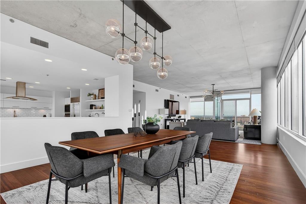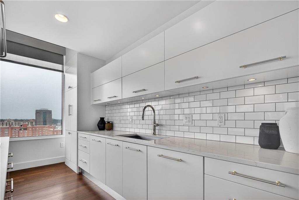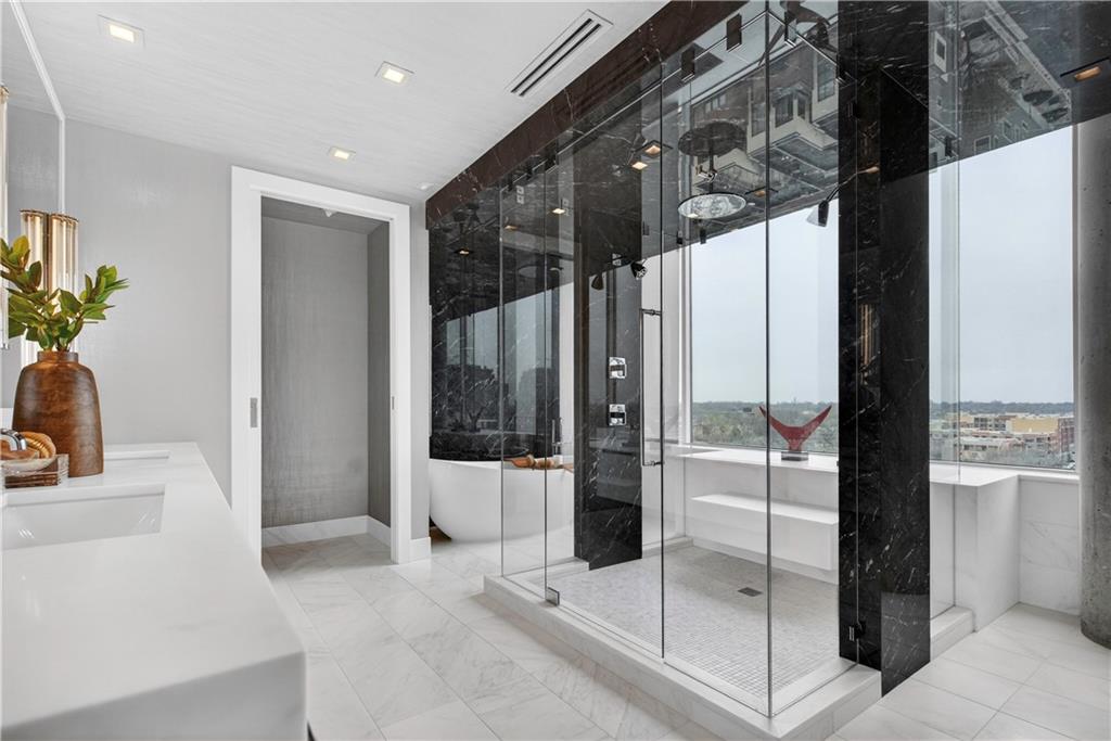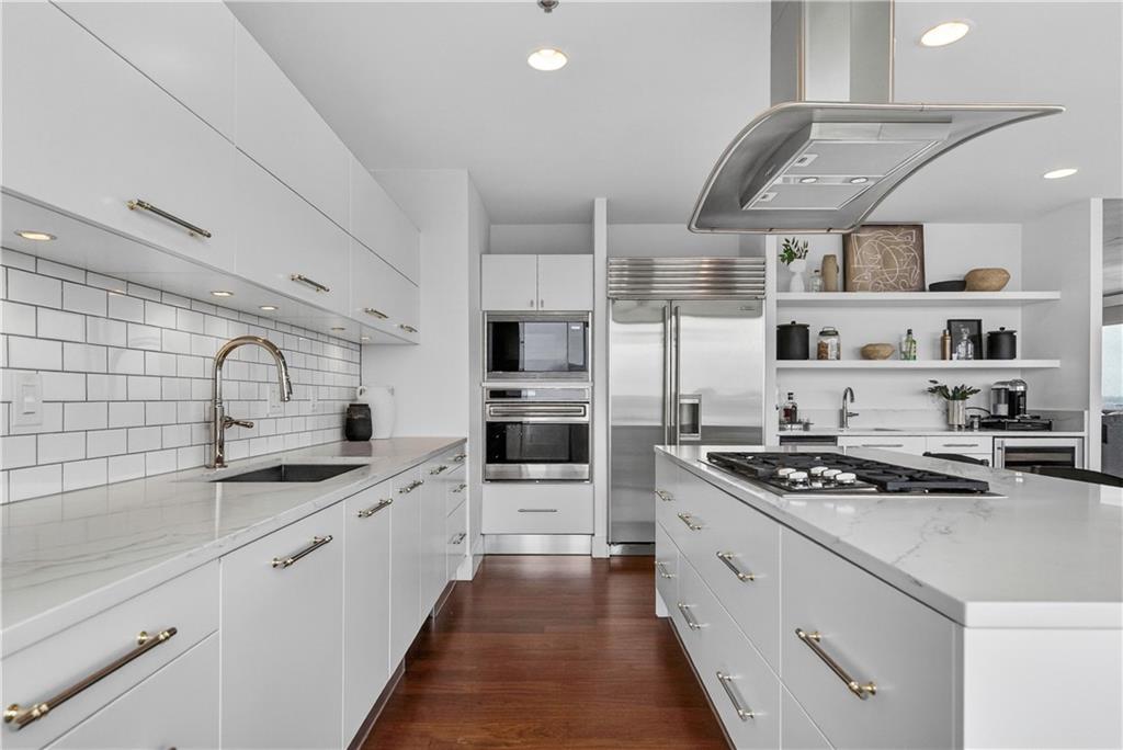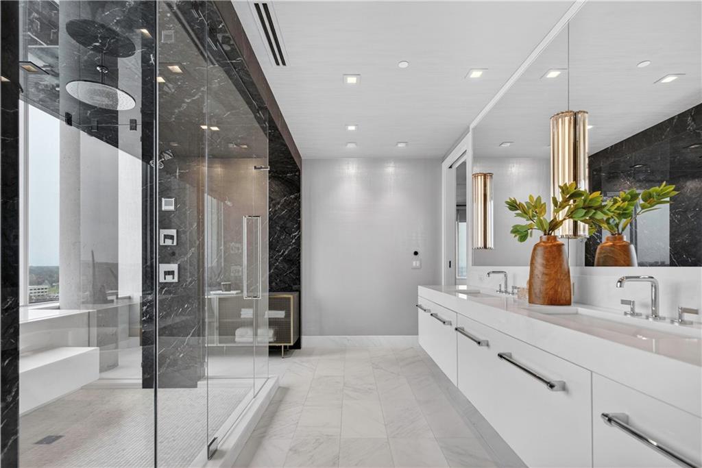 Experience refined penthouse living in one of the Plaza’s most sought-after modern buildings. This exceptional true three-bedroom residence combines expansive scale with sophisticated design and effortless comfort. Soaring 10-foot ceilings and walls of windows frame breathtaking panoramic views of the Plaza and city skyline, filling the home with natural light. A grand entry gallery creates an impressive first impression and offers the perfect backdrop for showcasing art. The stunning great room features rich Brazilian wood floors and flows seamlessly into a beautifully updated chef’s kitchen. Designed for both everyday living and entertaining, the kitchen is appointed with custom Pedini cabinetry, premium Wolf appliances, an Asko dishwasher, Monogram wine cooler, wet bar, soft-close drawers, and an oversized island. A bright breakfast area provides a serene start to the day, while the open formal dining space is ideal for hosting. The spacious primary suite is a private retreat, complete with a sitting area, an expansive 14' x 17' walk-in closet, and a newly renovated spa-like marble bath featuring a double walk-in steam shower. Enjoy outdoor living from a private patio, perfect for relaxing or entertaining against a stunning skyline backdrop. With its remarkable layout, elevated finishes, and unforgettable views, this penthouse offers a rare opportunity to experience luxury living at its finest.