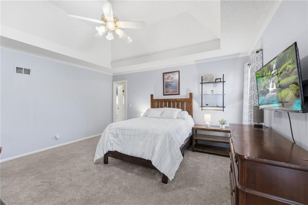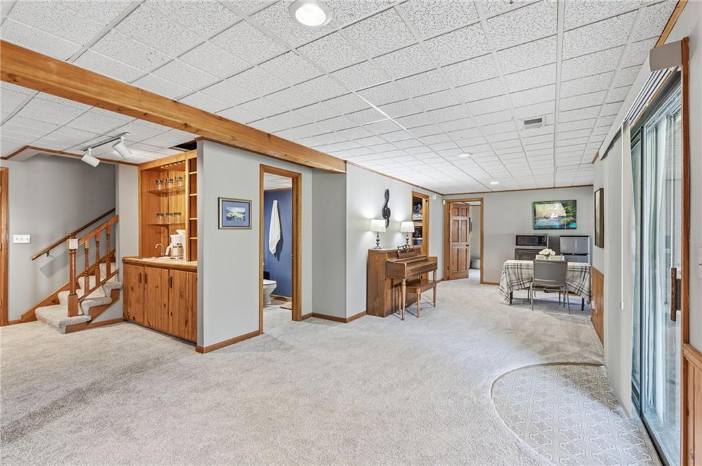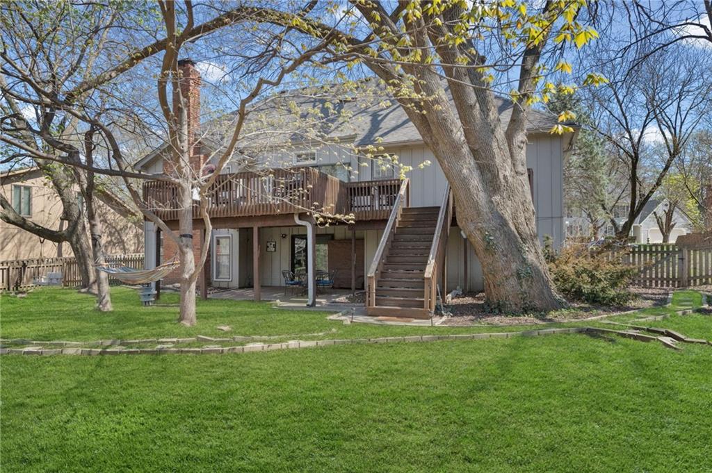 Experience refined living in this exceptional 1.5-story residence nestled in the sought-after Rolling Woods community of Blue Valley North. Boasting 5 spacious bedrooms, each with its own walk-in closet, this home offers both elegance and functionality at every turn. The beautifully appointed kitchen, with a breakfast area looking out over the back yard, features abundant cabinetry, a pantry, new countertops and flows effortlessly into a warm and inviting family room. Step outside to an expansive deck overlooking a private, picturesque backyard, perfect for upscale entertaining or quiet evenings at home. The finished walk-out lower level is an entertainer’s dream, complete with a generous recreation space, fifth bedroom, and full bath, ideal for guests or multigenerational living. Formal living and dining rooms provide timeless sophistication. Walls of tall windows bathe the home in natural light, enhancing its airy, open feel. With approximately 3,743 square feet, main-level laundry, and included appliances, this home offers both luxury and convenience.