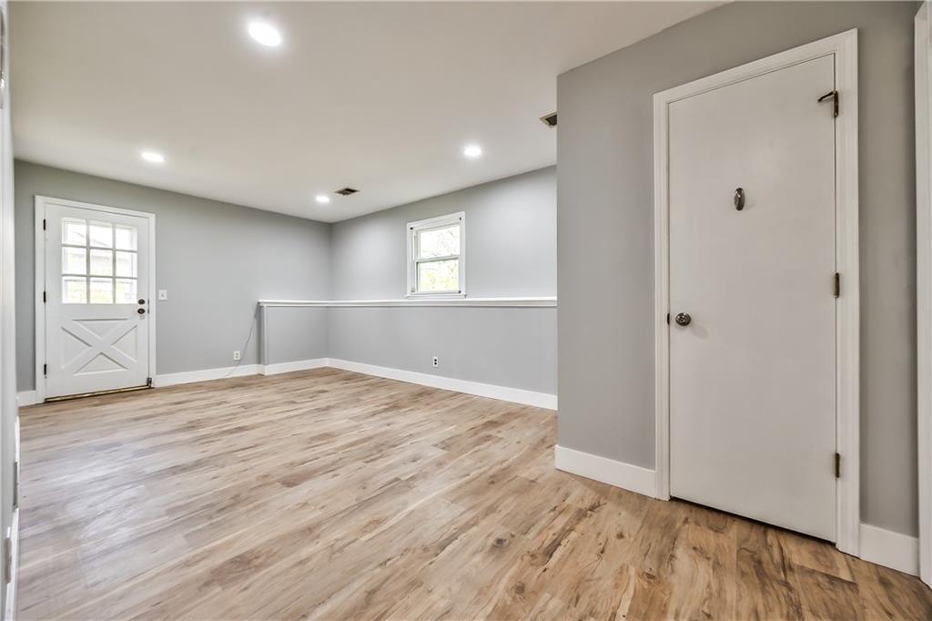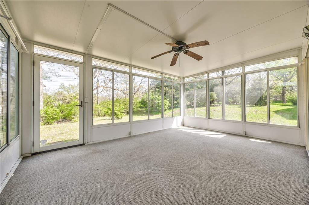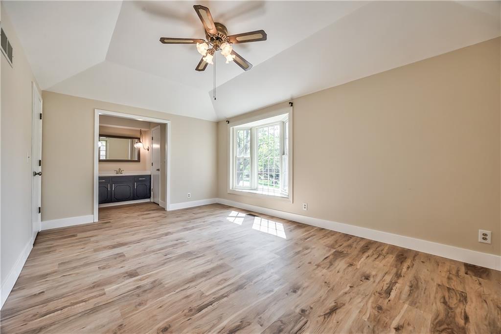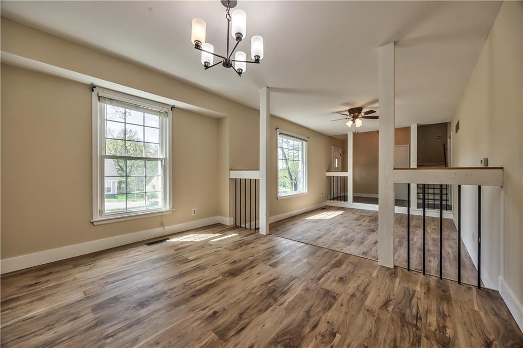 Welcome to this completely remodeled home in Shawnee. As you enter, you are greeted by a tiled entryway which leads into the sunken formal living room and adjacent formal dining room. Elegant luxury vinyl plank flooring flows seamlessly throughout most of the home, creating a cohesive and inviting atmosphere. The family room is an entertainer's dream, boasting soaring ceilings with striking wood beams and a timeless stone fireplace as the focal point. The kitchen is a chef’s delight, featuring pristine quartz countertops, freshly painted cabinets, a stylish subway tile backsplash, and brand-new stainless-steel appliances, including a refrigerator. Step into the sun room, offering an additional 204 square feet of space, perfect for relaxing or hosting gatherings with family and friends. The spacious master suite includes a private bath with a shower and a walk-in closet. A light-filled loft overlooks the family room and the entry. The generously sized secondary bedrooms are complemented by a second full bath with dual vanities. Fresh interior and exterior paint ensures a move-in-ready experience. The expansive bonus room on the lower level provides ample space for your imagination perfect as an office, craft room, or workout area. A large unfinished basement presents a wonderful opportunity to expand and design the living space of your dreams. Enjoy outdoor living at its finest in the backyard, where mature trees create a serene environment—ideal for entertaining or simply enjoying the peaceful surroundings.