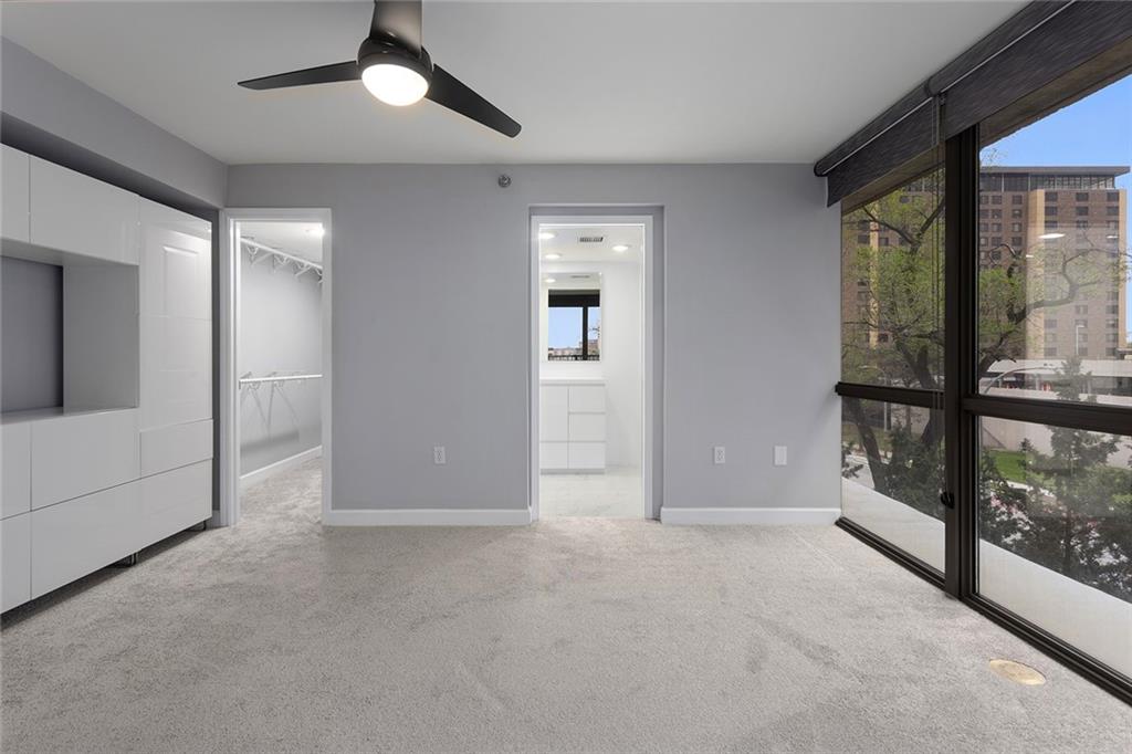 Welcome to luxury at The View in the heart of downtown Kansas City-where sophistication, space and skyline views come together in one exceptional residence with tax abatement. Perched on the 6th floor, this rare end-unit condo offers approx 1700 square feet and boasts a highly sought after THREE view floor plan, flooding the space with natural light and showcasing multiple amazing perspectives of the downtown skyline. Enjoy outdoor living like few others with TWO oversized private balconies, perfect for morning coffee or evening sunsets. Inside, the layout features newly re-done wood flooring and new carpet throughout. 2 bedrooms, 2 bath and a rare half bath off the kitchen, a unique upgrade not commonly found in the building. The open concept kitchen is appointed with granite, stainless, a center island, newly painted cabinets and a pantry, seamlessly connecting to the main living space. A large flex nook provides perfect space for a home office, library or creative studio. The primary suite offers a spa like retreat with updated bathroom featuring an enhanced pull out storage solution for maximum functionality. Floor to ceiling windows-paired with electronic shades on one side-complete the elevated living experience. Additional highlights include in unit washer/dryer and TWO parking spaces, offering convenience and value. Residents of The View enjoy Fitness Center, Pool, Sauna, Tennis, Basketball/Pickleball Courts, Putting Greens, Pet Play Area, Clubhouse with party room, executive kitchen and private theatre room. On Site management, secured entry with doorman and concierge. Extra storage lockers on 2nd floor and bicycle storage. Located just minutes from River Market, Berkley Riverfront and Columbus Park, this home places you in the center of Kansas City's vibrant dining, entertainment and waterfront lifestyle. Tax abatement in place. Grab your opportunity to own of the most desirable floor plans in this building.