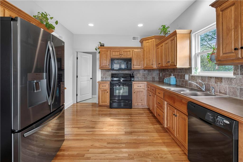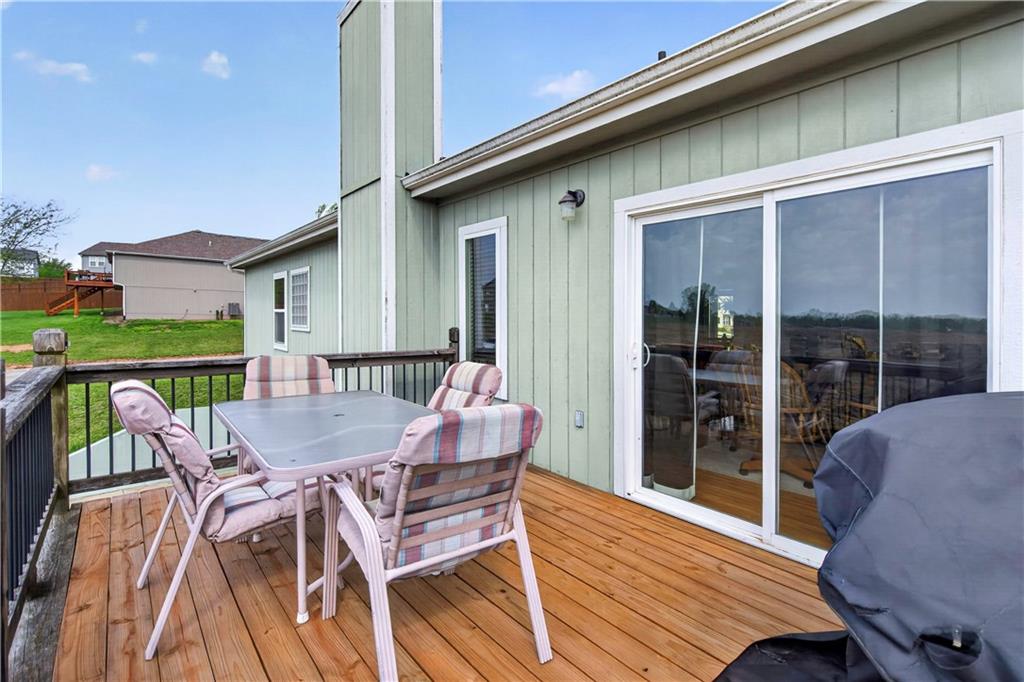 Welcome to Whispering Hills Estates, where this beautifully maintained home sits on a spacious corner lot surrounded by mature trees and peaceful views of nature and wildlife. Offering both privacy and a serene setting, this property is ideal for those seeking a quiet retreat while still being conveniently located near local amenities. Inside, you will find a functional and inviting layout with an oversized great room filled with natural light and anchored by a wood-burning fireplace, ready to create a warm and cozy atmosphere. The kitchen and dining area flow seamlessly and lead directly to the back deck, the perfect place to enjoy stunning sunrise and sunset views. The spacious primary suite offers a relaxing escape with double vanities and a jetted tub designed for unwinding at the end of the day. Additional features include an unfinished daylight walkout basement already stubbed for a full bathroom, providing endless potential for future living space, storage, or customization to fit your needs. A storm shelter adds an extra layer of peace of mind. The oversized garage offers ample space for vehicles, a workshop, or additional storage, making it as practical as it is functional. With its scenic setting, flexible living space, and opportunity to make it your own, this home stands out in the Lone Jack real estate market and is ready for its next chapter.