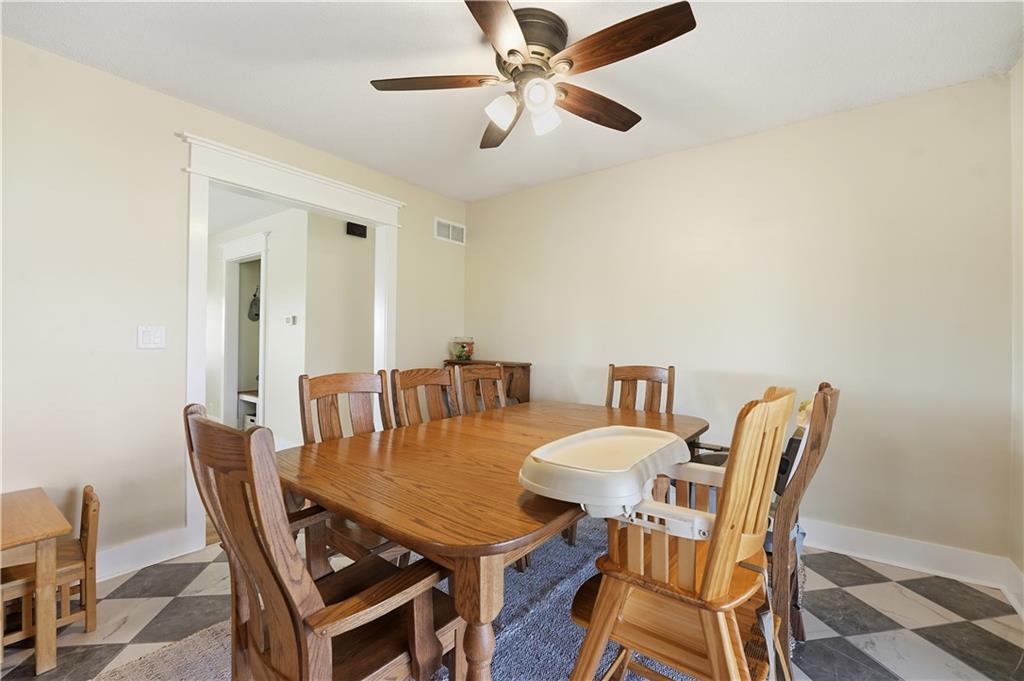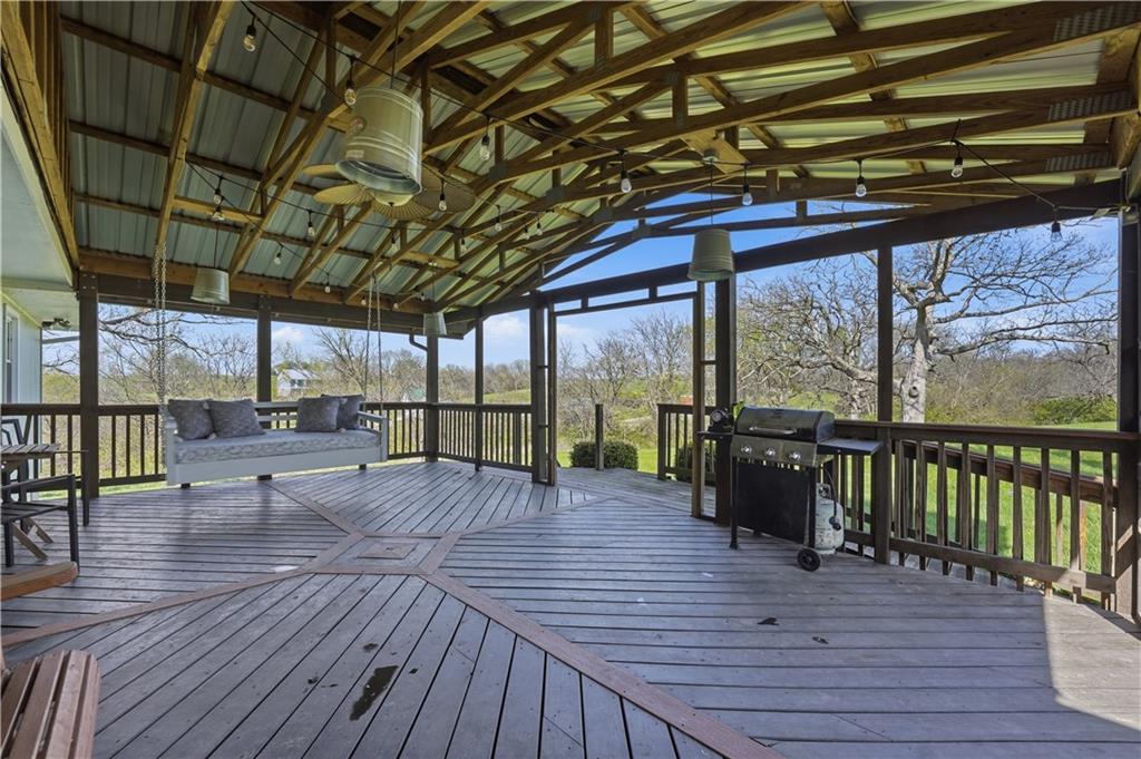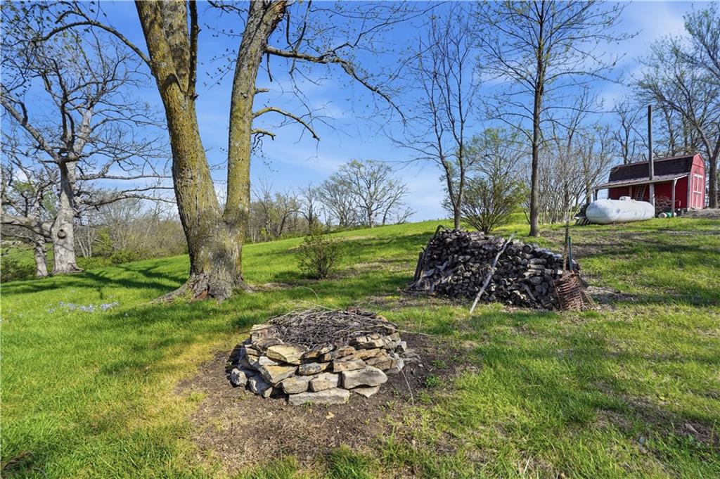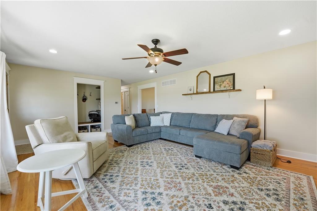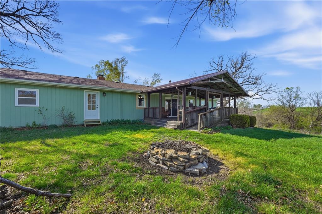 Welcome to this beautifully updated home in the Burns Addition subdivision of Edgerton, Missouri. From the moment you walk in, you’ll love the warm hardwood floors, stunning brick fireplace and custom built-ins that create a cozy and inviting living space. A wall of windows fills the home with natural light, making every room feel bright and open. The updated kitchen offers an abundance of cabinet and counter space, featuring Corian countertops, a gas cooktop with stainless steel hood vent, tile flooring, and a built-in pantry—perfect for everyday living and entertaining. Just off the kitchen, step out to the expansive covered deck overlooking a large, private lot with mature fruit trees, creating a peaceful outdoor retreat you’ll enjoy year-round. All three bedrooms are generously sized, and the primary bathroom has been fully updated with a fresh, modern feel. You’ll also appreciate the convenience of main-level laundry complete with built-in cabinets and a utility sink. The unfinished walkout lower level provides excellent storage or future finishing potential, and the attached two-car garage adds even more functionality. A small shed offers additional outdoor storage, and the serene setting provides privacy while still being conveniently located. This home truly combines comfort, space, and thoughtful updates—ready for you to move in and enjoy.