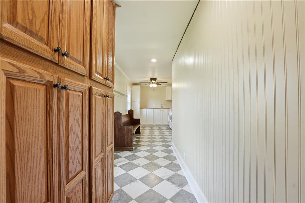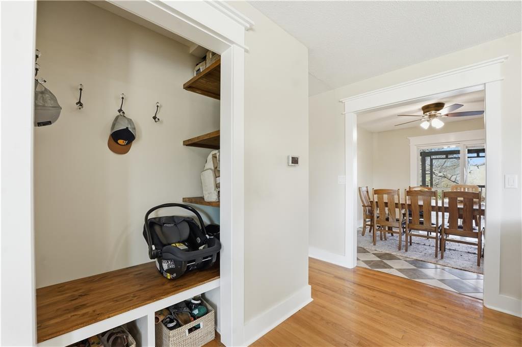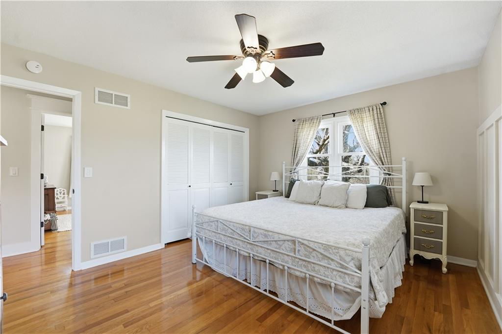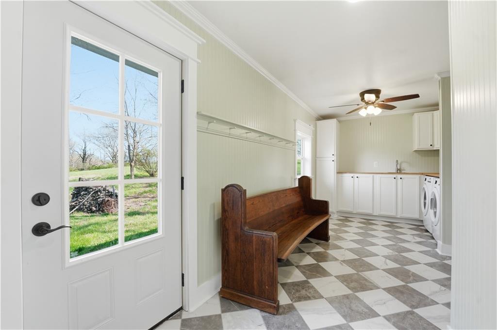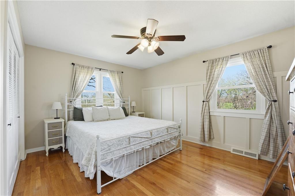 Welcome to this beautifully updated home in the Burns Addition subdivision of Edgerton, Missouri. From the moment you walk in, you’ll love the warm hardwood floors, stunning brick fireplace and custom built-ins that create a cozy and inviting living space. A wall of windows fills the home with natural light, making every room feel bright and open. The updated kitchen offers an abundance of cabinet and counter space, featuring Corian countertops, a gas cooktop with stainless steel hood vent, tile flooring, and a built-in pantry—perfect for everyday living and entertaining. Just off the kitchen, step out to the expansive covered deck overlooking a large, private lot with mature fruit trees, creating a peaceful outdoor retreat you’ll enjoy year-round. All three bedrooms are generously sized, and the primary bathroom has been fully updated with a fresh, modern feel. You’ll also appreciate the convenience of main-level laundry complete with built-in cabinets and a utility sink. The unfinished walkout lower level provides excellent storage or future finishing potential, and the attached two-car garage adds even more functionality. A small shed offers additional outdoor storage, and the serene setting provides privacy while still being conveniently located. This home truly combines comfort, space, and thoughtful updates—ready for you to move in and enjoy.