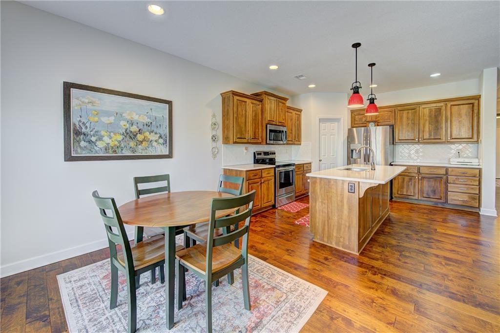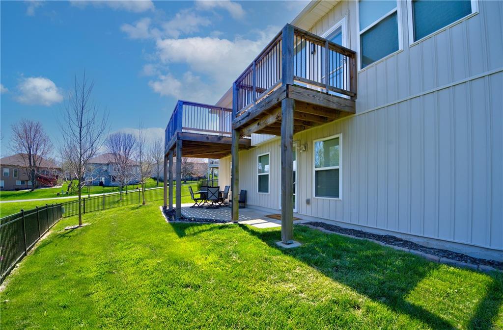 Better-than-new, maintenance-provided villa with a fenced yard that backs to trees and walking trail! Spacious and open floor plan includes the great room with gas fireplace and abundant natural light flowing seamlessly into the kitchen with walk in pantry, Quartz counters and large island with breakfast bar. The dining area walks out to a deck overlooking the backyard-perfect for relaxing and entertaining! The main-level primary suite is generously sized and includes a walk-in closet, double vanity, tile shower and private martini deck! Second bedroom, 2nd full bath and laundry room are also conveniently located on the main floor. The finished walkout lower level is ideal for multi-generation living with a large family room, wet bar, third bedroom, full bath, non-conforming fourth bedroom/office and access to the lower patio. Wired and ready with concrete pad for a generator! Maintenance-provided community includes lawn care, snow removal, and sprinkler system for only $132 per month. Fantastic location close to highways, shops, dining, walking trails and Stone Canyon Golf Course!