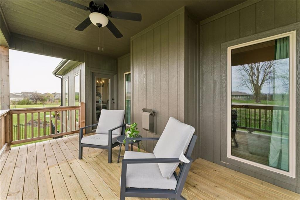 Welcome to "The Fairway" by Hoffmann Custom Homes, nestled in the highly desirable Waterford subdivision! Built in 2024, this beautifully designed reverse ranch offers 4 bedrooms and 3 full baths with comfortable, modern living. Step inside to an open main floor with soaring vaulted ceilings, a warm and inviting great room with a zero clearance gas fireplace, and a stylish kitchen featuring a spacious island, pantry, stained cabinetry, and stainless steel appliances, perfect for both everyday living and entertaining. The main level primary suite provides a relaxing retreat with a walk in closet, and you will appreciate the convenience of main floor laundry. Downstairs, the finished walk out basement offers additional living space along with a wet bar, making it ideal for hosting or unwinding. Enjoy peaceful outdoor moments on the covered deck or patio, and take advantage of the 3 car garage and in ground sprinkler system for added ease. Located in the North Kansas City School District and part of a community with a pool included in the HOA, this home truly has it all. Come see what makes this one so special!