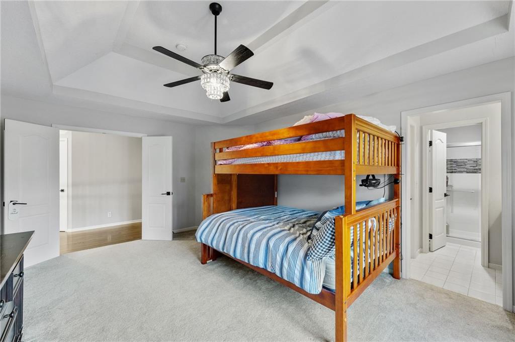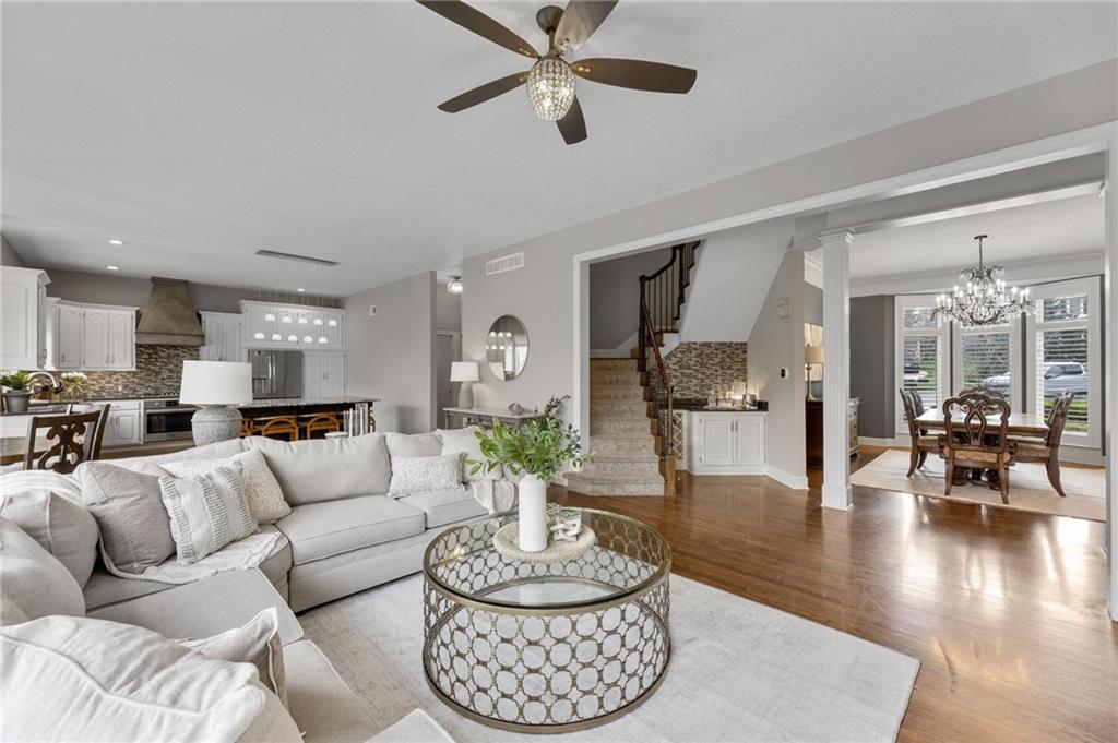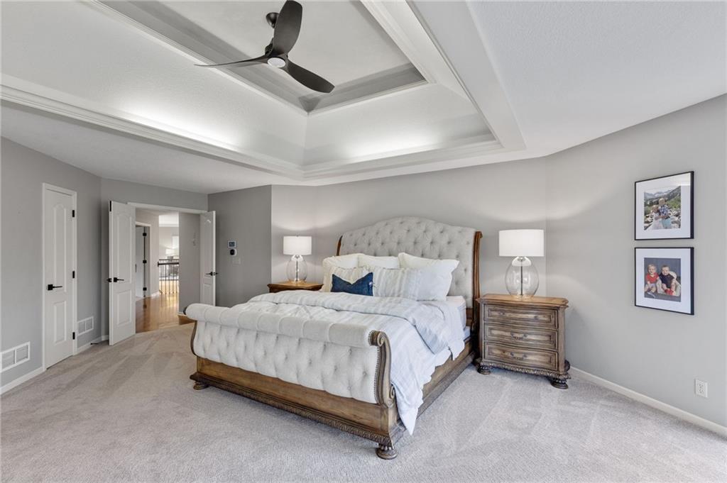 BACK ON MARKET...NO FAULT OF SELLER!!! Tucked at the end of a quiet cul-de-sac in the coveted Pavilions neighborhood, this stunning 5-bedroom home delivers the lifestyle buyers dream about. Double doors and a beautiful curved walkway sets the tone before you even step inside — and from there, every detail delivers. The soaring kitchen and oversized island are made for gathering, while the custom designed office, mudroom and walk in pantry are an organizers dream. Upstairs, the loft offers flexible space for work or play, and the primary suite is nothing short of a retreat — featuring a spa-worthy soaker tub, a cozy fireplace, and a closet that rivals most bedrooms. Whether sipping your morning coffee and watching the sunrise above the trees or enjoying a cozy fireside conversation, you won’t want to leave. The finished lower level goes above and beyond with a custom bar, full bedroom with ensuite, dedicated theater, exercise room, and play room. Step outside and breathe — private, treed views from every rear window and a gorgeous deck make you forget the world exists. Community pool, cul-de-sac privacy, and all the space you’ve been waiting for. Welcome home!