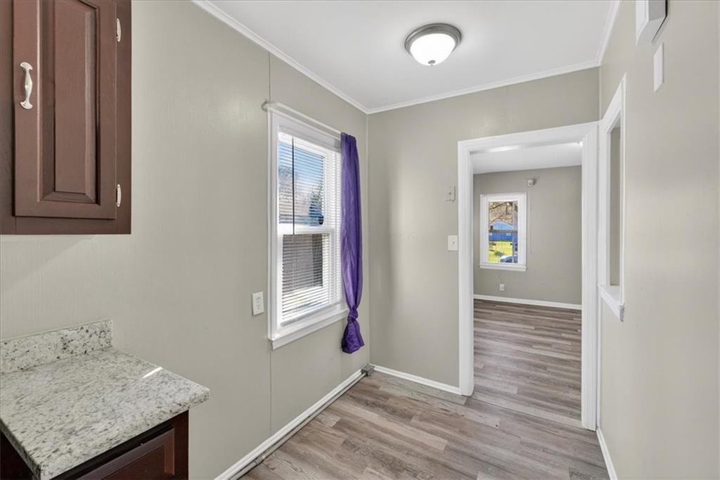 Move right in or add to you investment portfolio! This bright and inviting home features fresh, neutral finishes and an open, comfortable layout. The spacious living area is filled with natural light from large front windows and showcases updated flooring and clean, modern paint tones that create a warm, welcoming feel. A decorative glass block accent near the entry adds character. The kitchen offers painted cabinets, granite countertops, and a double sink positioned beneath a window overlooking the backyard. Unfinished basement affords ample space to add an additional finished living space. Outside, enjoy a yard with room for outdoor activities, gardening, or future enhancements. Conveniently located near shopping, dining, and major highways, this property is a great opportunity for a homeowner or investor looking for a move-in ready option.