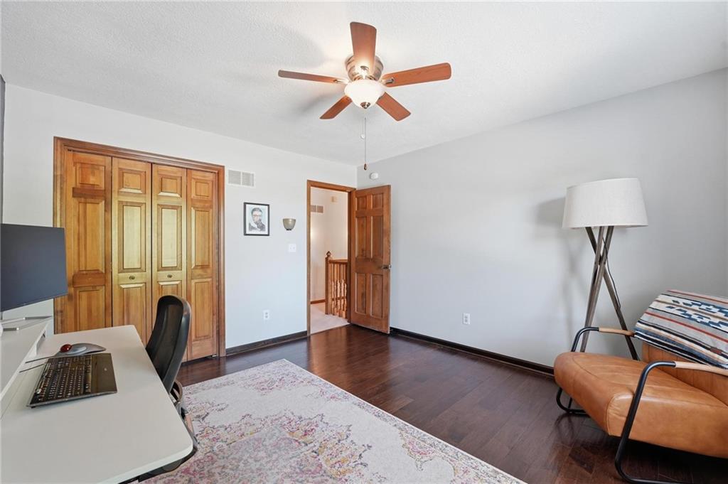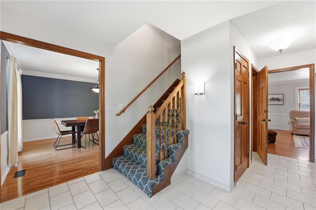 This well-maintained home offers a warm and inviting layout with a thoughtful blend of functional spaces and comfortable living areas. Hardwood floors flow through much of the main level, including a spacious living room filled with natural light and a formal dining room accented by classic trim details. The kitchen features granite countertops, tile flooring and an eat-in area, providing both style and everyday convenience. Upstairs, generously sized bedrooms offer plenty of space to relax and unwind, each with ample closet storage and ceiling fans for added comfort. The primary suite stands out with its walk-in closet and a beautifully appointed bath featuring a walk-in shower. A unique bonus area within the primary bath creates the perfect spot for a quiet reading nook or private retreat. The finished basement expands the living space with a comfortable family or recreation area and an additional bonus room complete with a sink, offering flexibility for hobbies, entertaining, or guests. Recent updates include attic insulation and newer exterior paint. Outside, the backyard provides a peaceful setting shaded by mature trees, creating a private and tranquil space to enjoy the outdoors.