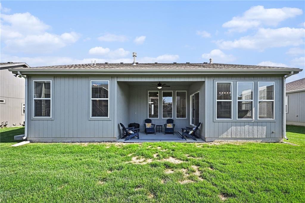 Located in a newer neighborhood that's still growing, this reverse ranch feels like a nearly new home. Built just four years ago by Summit Homes, it has a modern layout with finishes that are fresh, clean, and ready for you to move into. The home offers 4 bedrooms and 3 full bathrooms. The main level has approximately 1,544 sq. ft. of living space, and the basement adds another 988 sq. ft. of finished area. The open layout on the main floor makes it easy to flow from the kitchen to the dining area and living room. The kitchen has great finishes and a design that works well for both everyday meals and entertainment, plus there’s a mudroom and pantry near the three-car garage for extra convenience. The primary suite is on the main level for privacy and comfort, with a spacious bedroom, a well-designed bathroom, and direct access to a walk-in closet. A second bedroom and full bathroom near the front offer flexibility for guests or an office. Downstairs, the large family room is great for hanging out, with a wet bar that's great for hosting. Two more bedrooms share a Jack-and-Jill bathroom, and there’s unfinished space for extra storage. Egress windows bring in natural light and make the lower level feel bright and welcoming. Outside, you’ll find a covered concrete patio right off the dining area—perfect for quiet evenings or entertaining guests. The yard has an in-ground sprinkler system, and the home comes with a security system for peace of mind. With 2,532 sq. ft. of finished space, a three-car garage, and a location in a growing part of Blue Springs area, this home blends modern style, useful space, and everyday comfort—ideal for those who want something that feels new without the hassle of starting from scratch.
