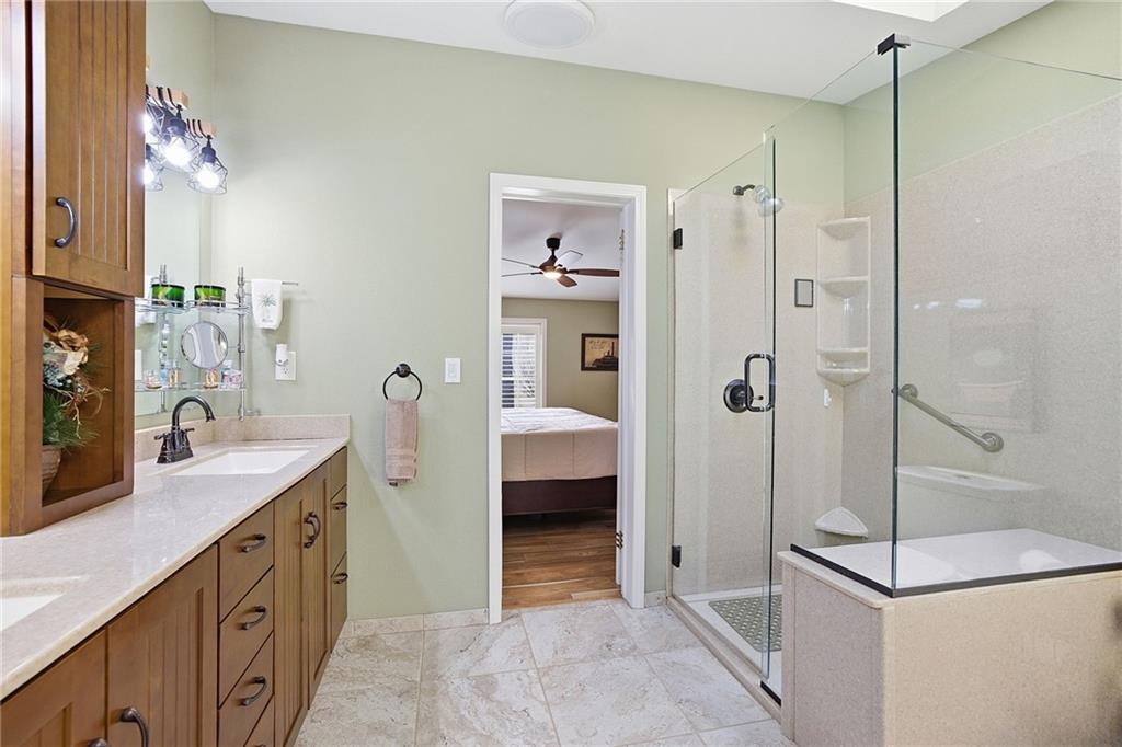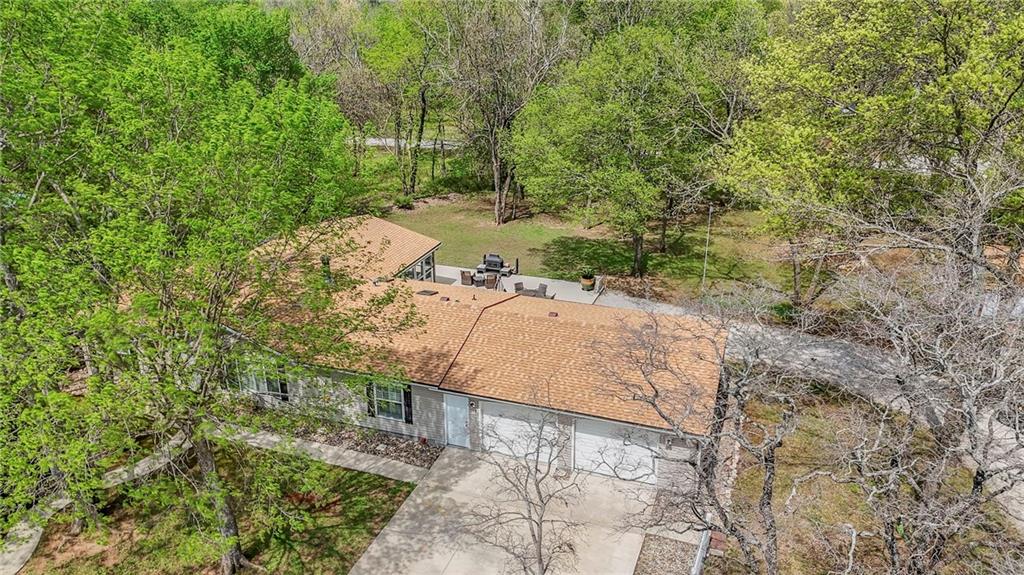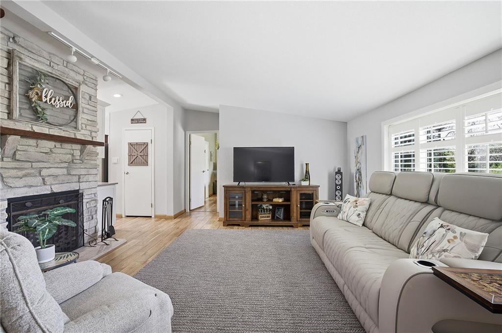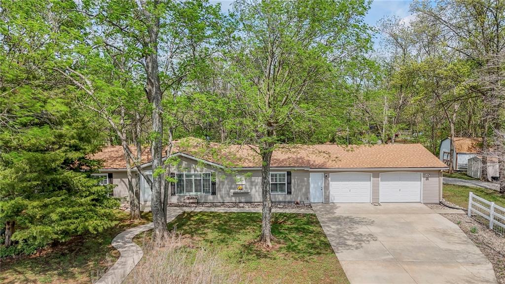 Beautifully updated ranch home, a rare find that offers exceptional privacy and space spread across four combined lots in the gated Linn Valley Lakes community. The interior boasts a spacious open layout with soaring vaulted ceilings, refreshed with bright paint colors and a whitewashed stone fireplace, stylish luxury vinyl plank flooring, and elegant plantation shutters throughout. At the heart of the home is a large kitchen featuring sleek quartz countertops, a walk-in pantry, and plenty of space for gatherings, making it an entertainer's dream. The home also features a large primary suite and an impressive sunroom that provides significantly more square footage to the living space while flooding the home with natural light. Oversized 26x30 garage. Practicality meets the lake lifestyle with two outbuildings on-site, perfect for storing all your lake toys, tools, and gear. Major updates provide peace of mind, including a one-year-new roof, and while the home currently utilizes a cistern, the ability to connect to city water is currently being installed across the street for easy future access. Outside, the level, treed grounds feature a huge patio, private fire pit, hot tub and paved drive all while granting you access to premier resort amenities like the 18-hole golf course, private lakes, and community pools. Welcome home to Linn Valley Lakes! HOA fees for this property include the lot the house sits on and an additional 3 adjacent lot. Each lot has an HOA fee for the cumulative monthly HOA fee that is listed. Taxes and SqFt per county record. Room sizes approx. No preferences or limitations or discrimination because of any of the protected classes under Fair Housing.