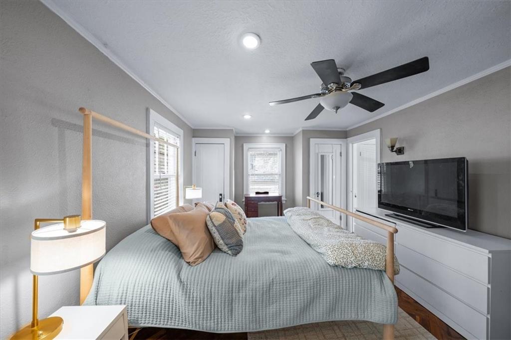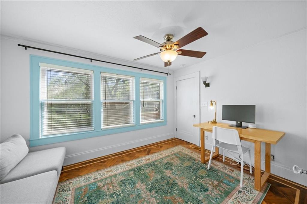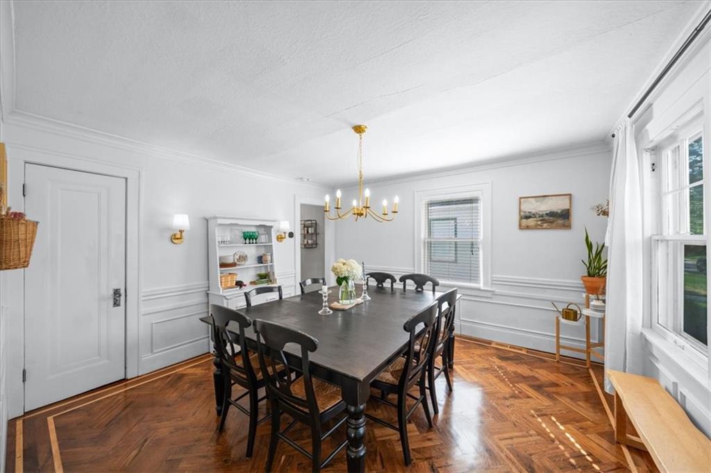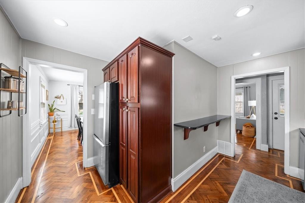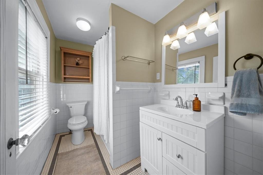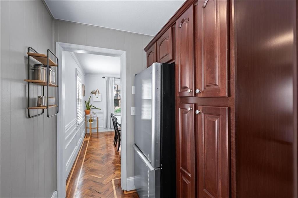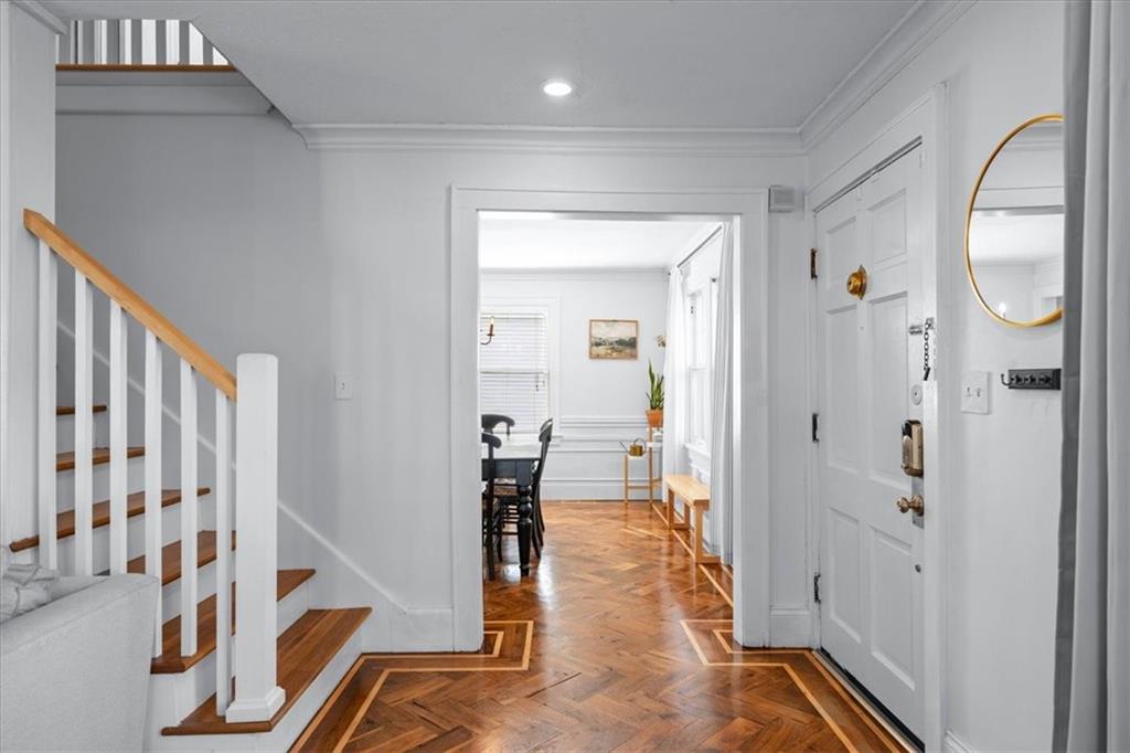 This charming 3-bedroom, 1.5-bath Colonial is full of character and thoughtful updates throughout. Stunning herringbone walnut wood floors with a maple border make a true statement—one of a kind! The main level features a formal living room, formal dining room, convenient half bath, and an updated kitchen with stylish cabinetry, granite countertops, marble tile backsplash, and stainless steel appliances. All three bedrooms are located on the second level, along with a full bathroom. Generously sized bedrooms include a primary suite with dual closets and a second bedroom featuring a custom double-wide closet system. Enjoy the covered porch just off the living room and the adjacent paver patio—perfect for relaxing or entertaining. The spacious backyard offers plenty of room to play or garden. Unbeatable location just minutes from shops and restaurants along Gregory and 63rd Street!