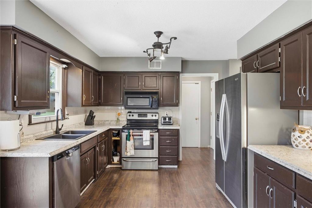 Tucked into a quiet cul-de-sac in the heart of Lenexa, the established Serene Woods neighborhood, this 2-story home is surrounded by green space—offering a setting that’s hard to replicate. Plus, no HOA adds even more flexibility and appeal! With 1,550 square feet above grade, a 2-car garage, and a layout full of opportunity, this home is ready for its next chapter. The bones are solid, and several major updates are already in place, including Radon Mitigation, AC (2023), water heater (2023), furnace & humidifier (2024), and a new dishwasher (2025)—giving you a strong head start. Inside, you’ll find a traditional floor plan with room to reimagine and personalize. The lower level offers untapped potential for a future recreation room, non-conforming 4th bedroom, or office space. Whether you’re an investor, a renovator, or someone with a vision to create something truly your own, this is an opportunity to bring new life into a well-loved home in a prime Lenexa location.