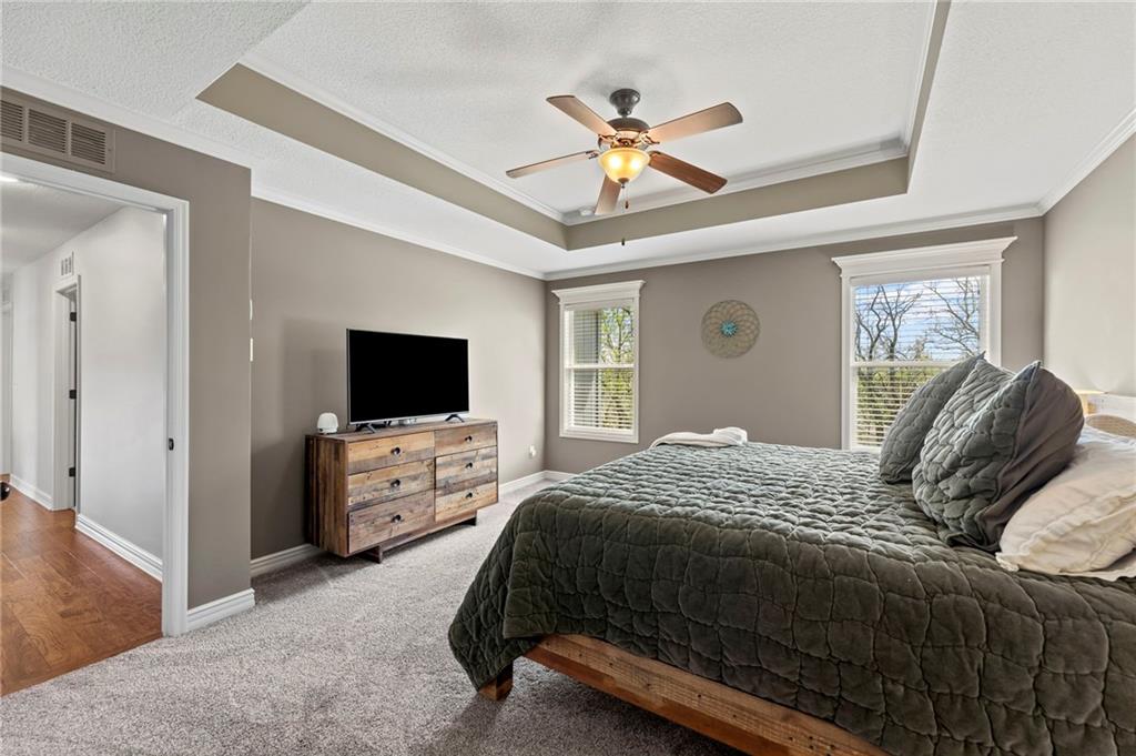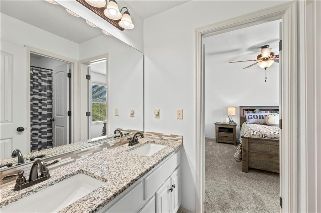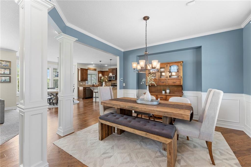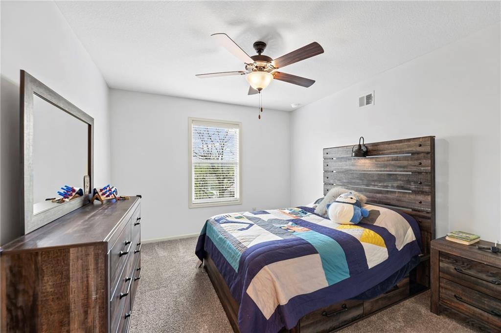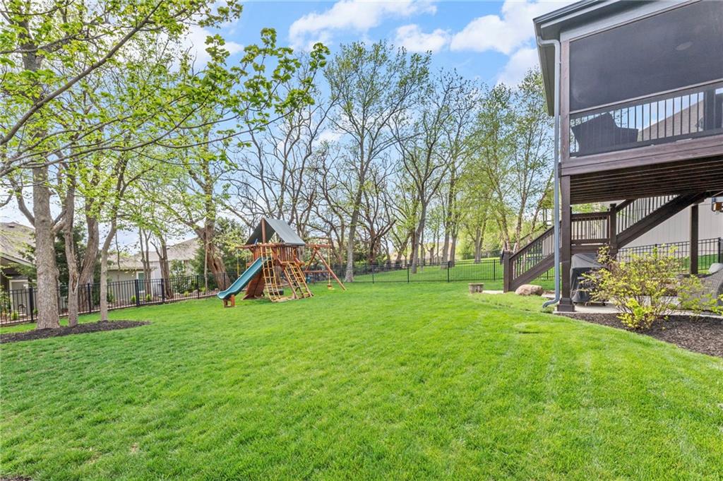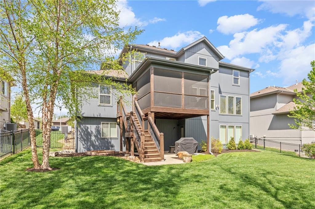 Beautifully maintained by the original owner, this stunning 5-bedroom, 4-bath home in College Meadows offers space, style, and thoughtful design throughout. The open concept layout flows seamlessly from the formal dining room into the inviting living room and well-appointed kitchen, creating an ideal setting for both everyday living and entertaining. The living room is filled with natural light from expansive windows and features a floor-to-ceiling stone gas fireplace with floating shelves. Step outside to the 14x14 screened-in deck overlooking the fenced backyard, complete with stairs leading down to the patio below. The kitchen is equipped with custom cabinetry, granite countertops, a large island, gas range, and a charming coffee bar nook with space for a beverage fridge. A main-level bedroom perfect for a home office or guest suite is conveniently located next to a full bathroom. Upstairs, you’ll find four spacious bedrooms and three full bathrooms. One bedroom features a private ensuite, while bedrooms two and three share a Hollywood bath. The impressive primary suite includes a large tiled shower, tub with tile surround and transom window, double vanity with an oversized framed mirror, and a generous walk-in closet. The walk-out basement offers abundant space and endless potential for future finishing, a home gym, or additional living area. Situated on a beautiful lot backing to a tree line on a quiet street, this home also provides easy highway access. A fantastic opportunity you won’t want to miss!
