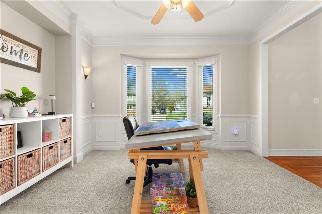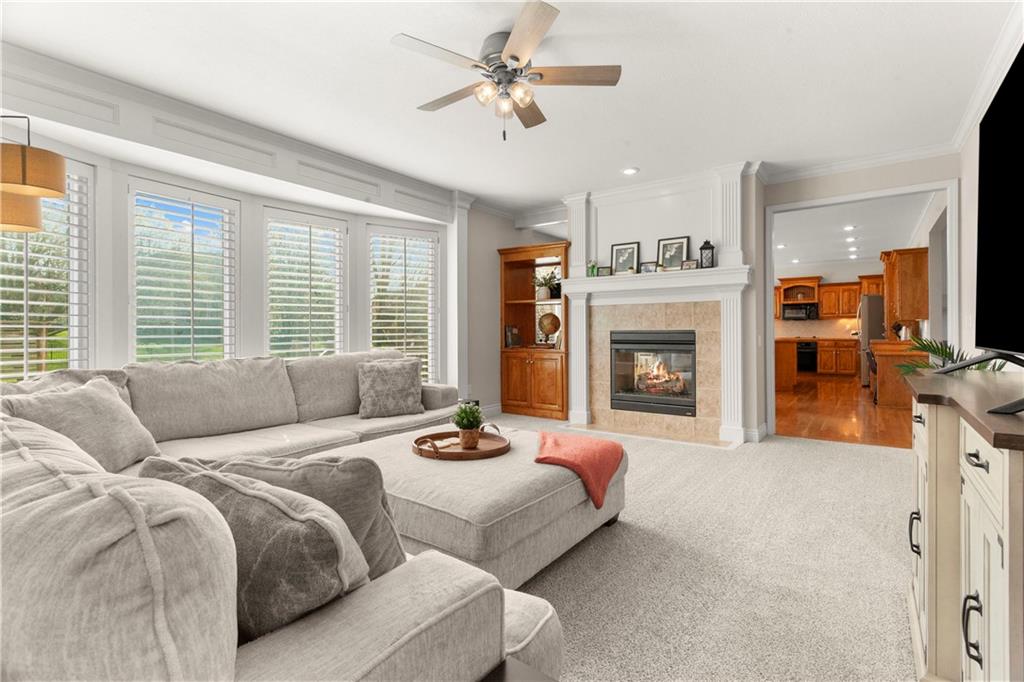 This is a true stunner in the coveted Paddock neighborhood, where pride of ownership shines throughout. You’ll immediately notice the abundance of natural light pouring in through oversized, newer (all replaced 2-3 years ago) windows. A spacious entry welcomes you and flows seamlessly into the main living areas. The well-appointed kitchen offers ample cabinet and counter space, a large island, walk-in pantry, and casual dining area. It opens to a cozy hearth room with a see-through gas fireplace shared with the adjoining family room—generously sized and highlighted by a bow window that maximizes natural light. The kitchen and family room overlook a gorgeous, fully fenced backyard—perfect for entertaining—with a 17x14 deck and matching sized patio pre-wired for a hot tub. A formal dining room with elegant trim adds versatility, while a half bath and spacious laundry room with built-in sink complete the main level. Upstairs, accessible by two staircases, you’ll find an inviting primary suite with a spacious bedroom and a well-appointed ensuite featuring double vanities, a whirlpool tub, and a truly impressive walk-in closet. Three additional bedrooms all include walk-in closets—one with a private bath, the others connected by a Jack-and-Jill. A bright loft with vaulted ceiling and skylight offers the perfect reading nook or flex space. The finished daylight basement includes a 5th non-conforming bedroom or office, along with high-quality finishes ideal for a theater or workout area. An attached bar space, plus room for a game table, a 4th full bath, and generous unfinished storage complete the lower level. Zoned HVAC adds efficiency, and the oversized 3-car garage easily accommodates a full-size truck. The carpets in the home were replaced about 2-3 years ago. There is also a battery back-up system on the sump pump.