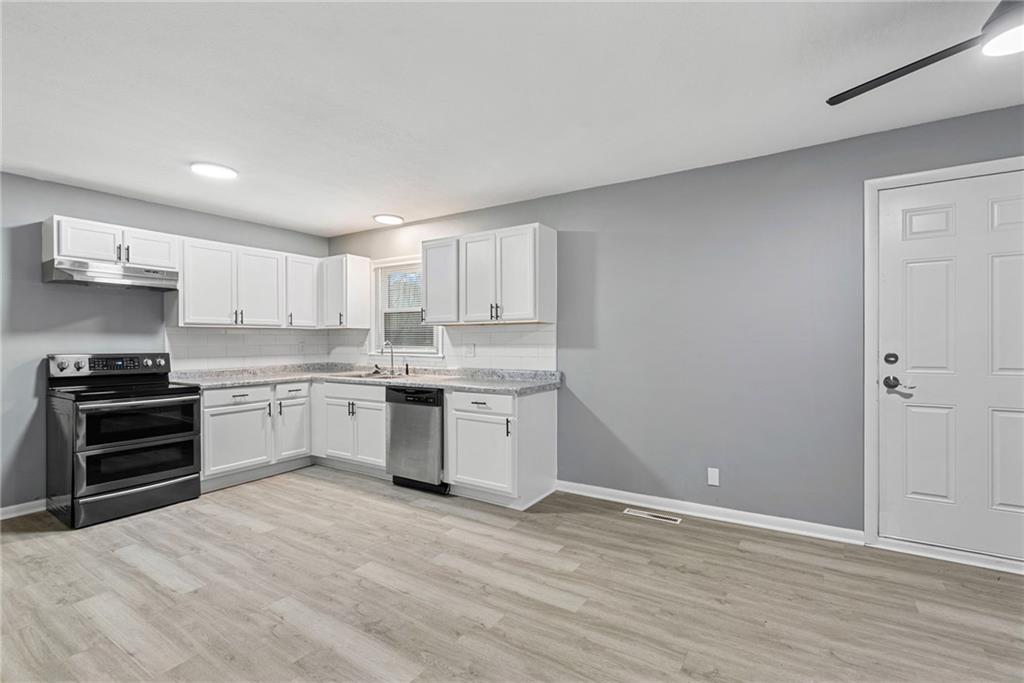 Welcome to this beautifully fully renovated 3-bedroom, 1-bath home offering true main-level living in a convenient Kansas City, KS location! This move-in ready property has been thoughtfully updated from top to bottom, featuring a new roof, brand new flooring, fresh interior and exterior paint, and modern finishes throughout. The updated kitchen is a standout, complete with new cabinets, new countertops, and stainless steel appliances that stay with the home, making it both stylish and functional. The home offers spacious bedrooms with great natural light, while the completely remodeled bathroom features a tile shower, new vanity, and updated fixtures for a clean, modern feel. Enjoy the convenience of main floor laundry, making everyday living easy and efficient. Situated in an established neighborhood, this home offers quick access to major highways including I-635 and State Ave, making commuting a breeze. You’re also just minutes from shopping, dining, and entertainment options, with Kansas City, KS offering a wide range of retail and restaurant destinations, including major shopping areas and local favorites. Whether you’re a first-time buyer or looking for a turnkey investment, this home checks all the boxes with updates, location, and value.