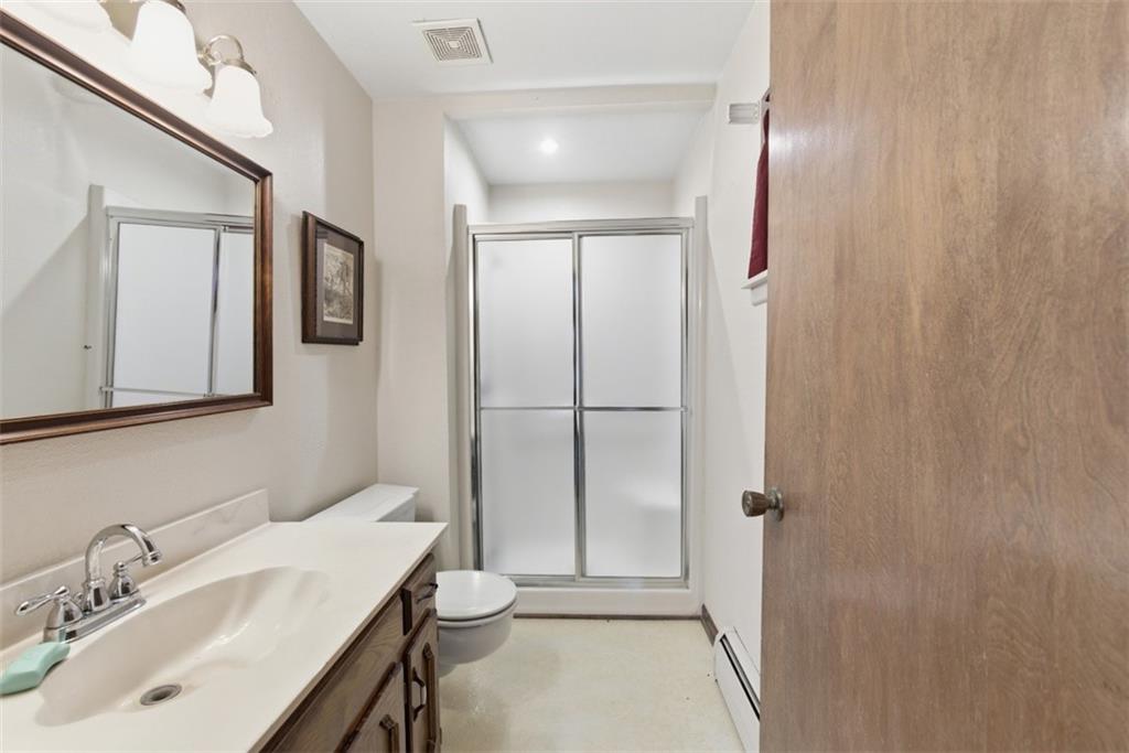 Brick ranch on a secluded 0.6-acre lot in a wooded subdivision with city views! This 3 bed, 3 bath home offers 2,625 finished SF plus 816 unfinished SF in the walk-out basement with workshop, storage, and laundry hookups. Features include a primary bedroom on the main level, 2 fireplaces, 2-car attached garage, two-level deck, and hardwoods under carpet on the main level. Energy-efficient hydronic baseboard heat and 200 AMP breaker box. Major updates include a septic tank replaced in 2025 and a complete roof removal/replacement in 2016. Large sloped lot is ideal for sledding, terracing, or enjoying the mature trees and private setting. Located in the award-winning North Kansas City School District. Bidding ends May 15 at 1PM.