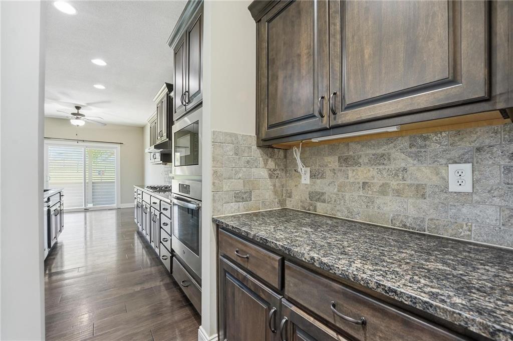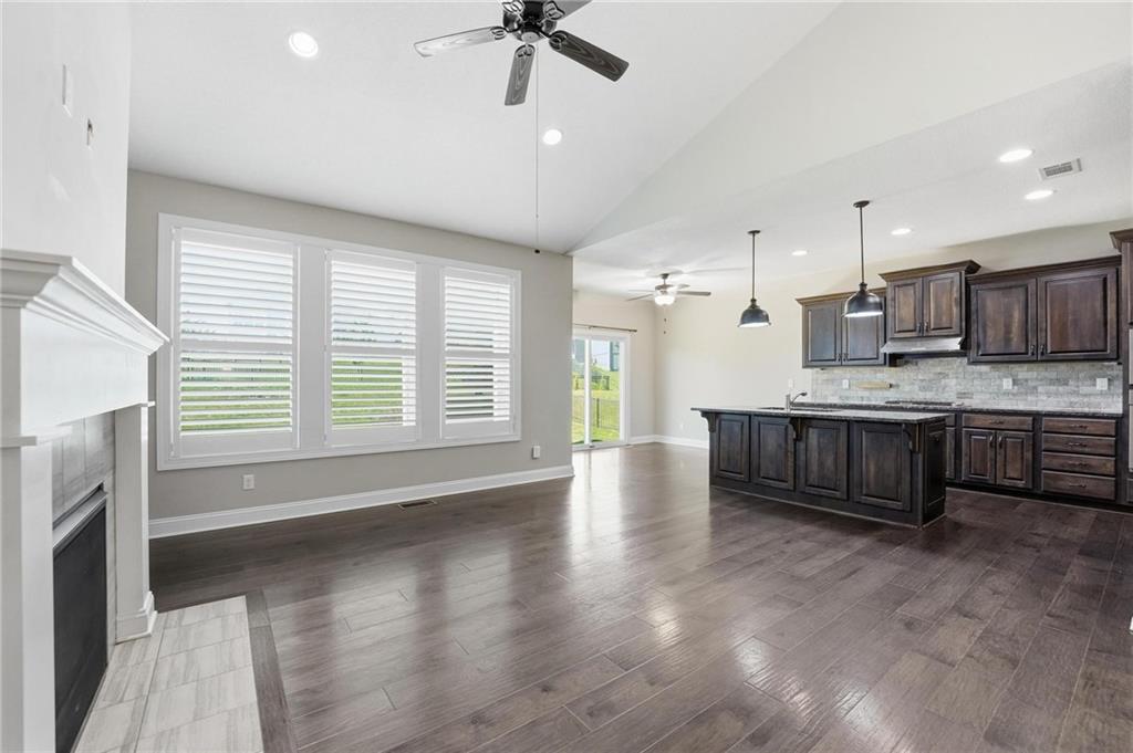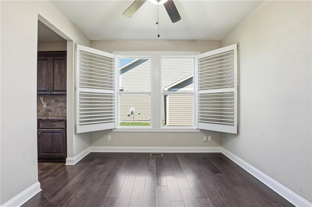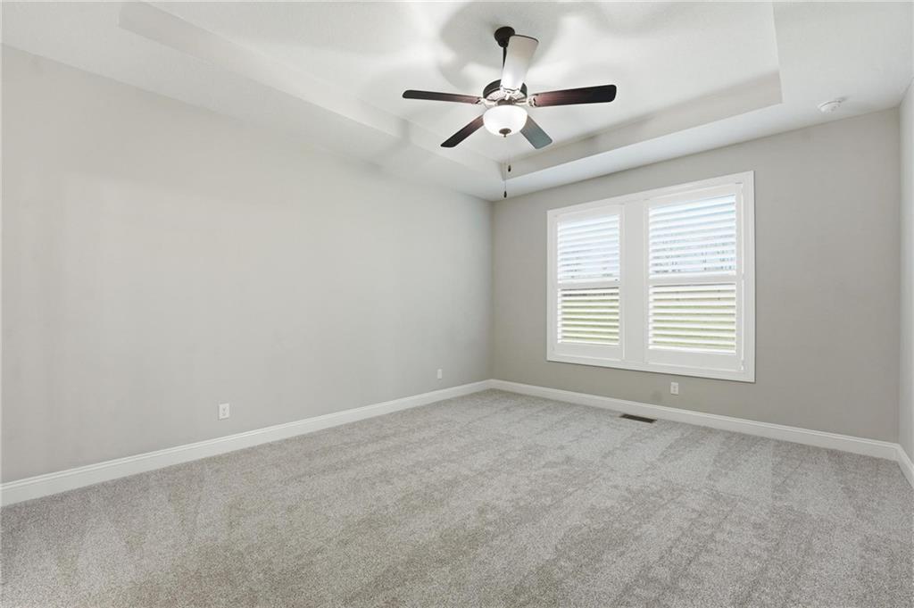 Beautifully upgraded home on a large, professionally landscaped lot in Lee’s Summit offering a rare combination of custom features, comfort, and efficiency. From the moment you step inside, you’ll notice the vaulted and tray ceilings, highlighted by a custom wood-look beam in the living room that adds warmth and architectural character. The kitchen is well-appointed with granite countertops, GE Profile appliances, and custom pantry shelving, making it both functional and stylish. Throughout the home you’ll find thoughtful upgrades including nine ceiling fans, remote-controlled lighting and fan switches, decorative vent covers, and custom shelving in the living room and basement. The home is equipped with whole-house comfort systems including a central humidifier, dehumidifier, and air scrubber, along with a smart thermostat. Energy efficiency is enhanced with upgraded attic insulation (R45 over the garage and R60 over living areas), plus a radon mitigation system and sump pump with battery backup. The primary suite and upper-level living areas feature plantation shutters, while lower-level bedrooms include blinds. Additional custom touches include weathered barnwood-look tile accents in select spaces and a second stair railing for added safety. Exterior features include a larger patio, four-foot fenced yard, rocked flower beds, and extensive landscaping with a variety of mature and ornamental plantings. A smart sprinkler system and French drain add convenience and functionality. The exterior is further enhanced with painted foundation walls to match the Hardie Board siding, custom decorative shutters, and lockable window well covers. Additional highlights include a natural gas line for a gas or electric dryer and custom laundry shelving. This home offers a unique blend of upgrades, space, and thoughtful design in a desirable Lee’s Summit location.