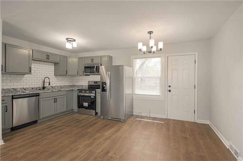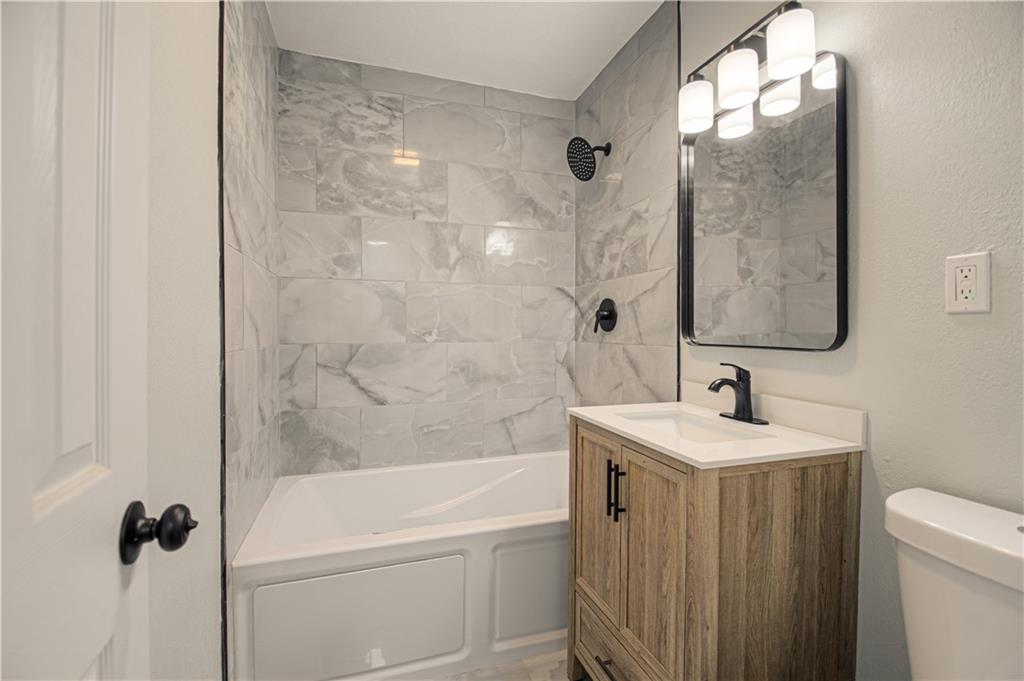 Completely remodeled and move-in ready, this charming 3-bedroom, 1-bath home offers modern updates throughout and worry-free living for years to come. Step inside to find refinished hardwood floors in the living room and bedrooms, complemented by NEW Luxury Vinyl Plank flooring in the kitchen and dining area. NEW interior paint, all NEW lighting fixtures, and ceiling fans in every bedroom create a bright, inviting atmosphere throughout the home. The fully remodeled kitchen features granite countertops, stylish backsplash, stainless steel appliances, and beautifully painted new cabinetry, providing both functionality and modern appeal. The bathroom has been completely renovated with gorgeous new tile, jacuzzi tub, and updated fixtures, offering a clean and contemporary feel. Major mechanical and exterior improvements include a NEW roof, NEW thermal windows, NEW air conditioning system, NEW storm door, NEW exterior paint, and a NEW garage door opener, giving buyers peace of mind and long-term value. With quality upgrades inside and out, this thoughtfully remodeled 3-bedroom home is ready for its next owner to move in and enjoy. Agent related to seller.