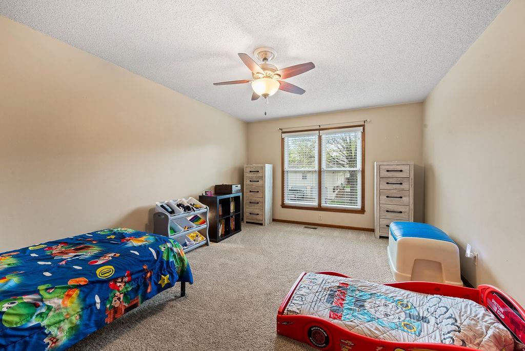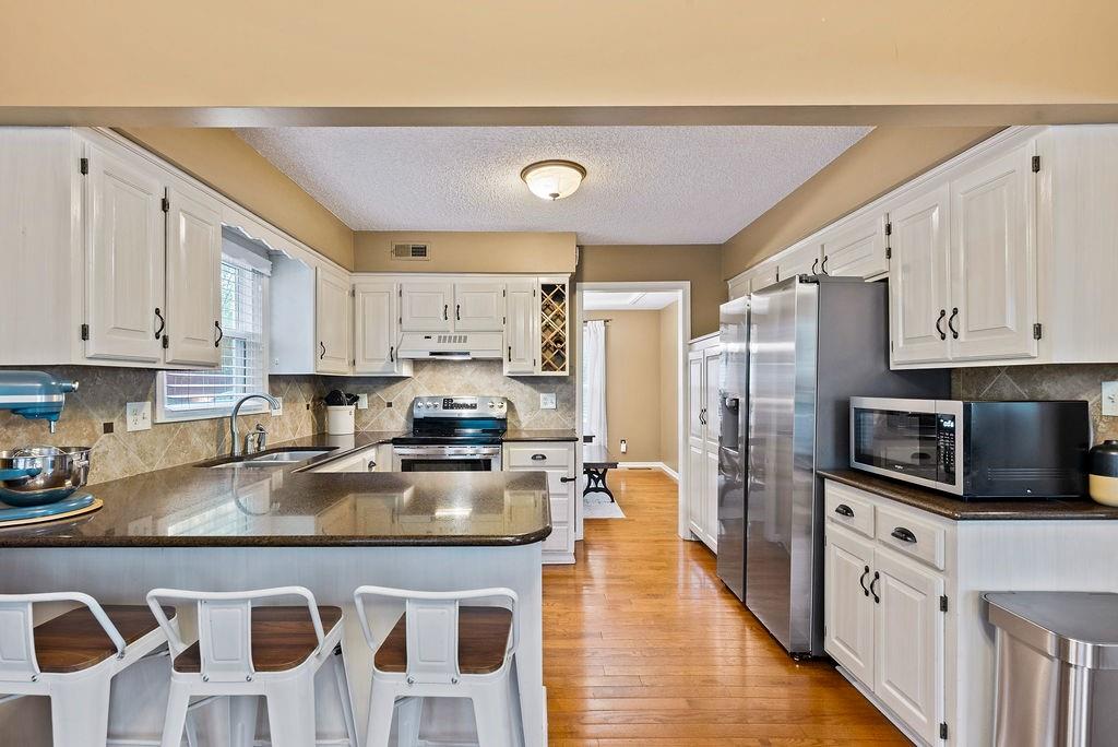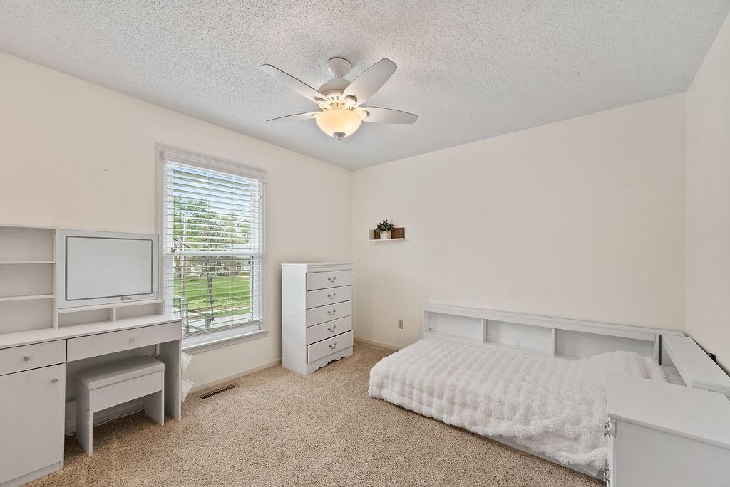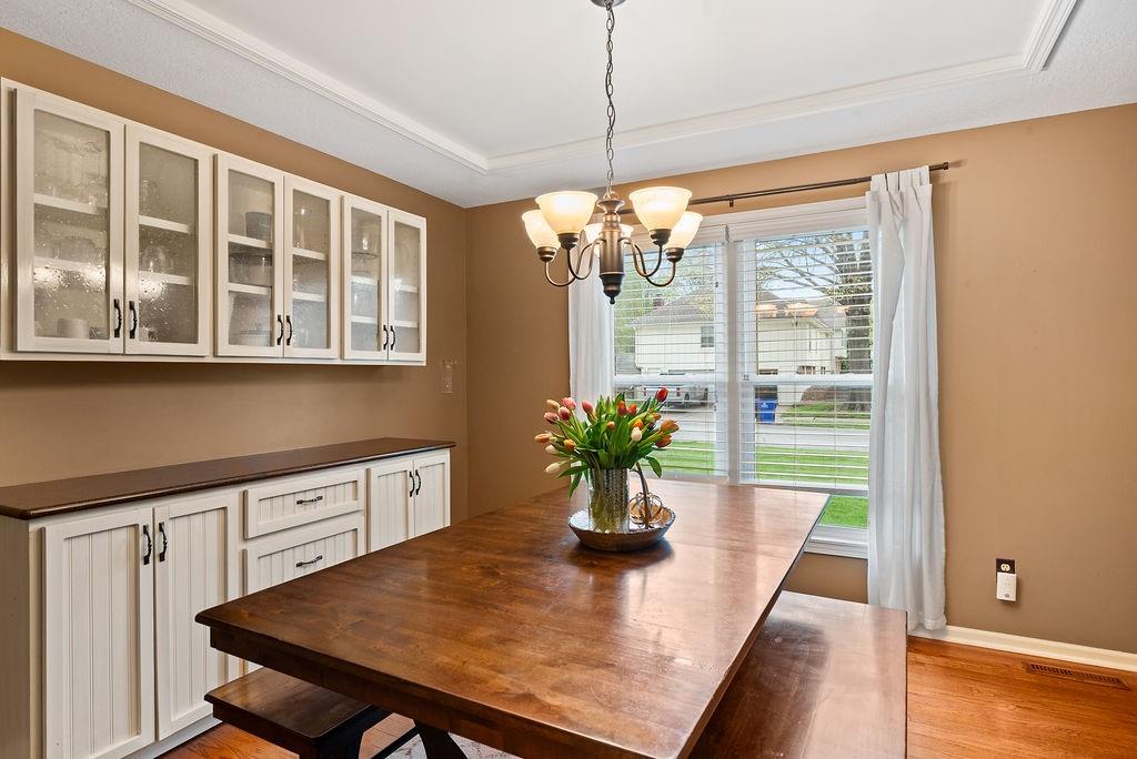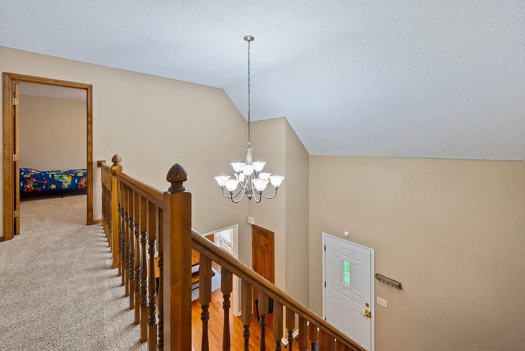 This well-maintained two-story home offers a functional layout, comfortable living spaces, and a private backyard setting. The main level features a spacious great room with vaulted ceilings, and wood floors that create a warm and inviting atmosphere. The kitchen is designed for everyday convenience with a pantry, peninsula bar for additional seating, and an open connection to the breakfast room, where large windows bring in abundant natural light. A formal dining room with wood floors sits just off the kitchen, providing a great space for gatherings and entertaining. The first floor also includes a laundry room and a half bathroom. Upstairs, all four bedrooms are thoughtfully arranged, with three bedrooms located on one side and a fourth bedroom positioned separately at the opposite end of the hallway—ideal for privacy or a home office setup. The primary suite features its own private bathroom. The oversized garage offers room for two vehicles along with extra storage for bikes, tools, and lawn equipment. The unfinished basement provides excellent storage space today and the opportunity to add future living space. Step outside to a fully fenced backyard that backs to trees, offering a peaceful setting perfect for relaxing, playing, or gardening. The deck adds another great space to enjoy the outdoors. You will love the beautiful, new landscaping around the house. The roof and water heater are only 3 years old, and the hvac is 5 years. Conveniently located near shopping, dining, and with easy highway access, this home is also just minutes from Miller J. Fields Park with its splash pad, playgrounds, ball fields, and trails. With no HOA, this property offers both flexibility and value. Stop by to see all this home has to offer!
