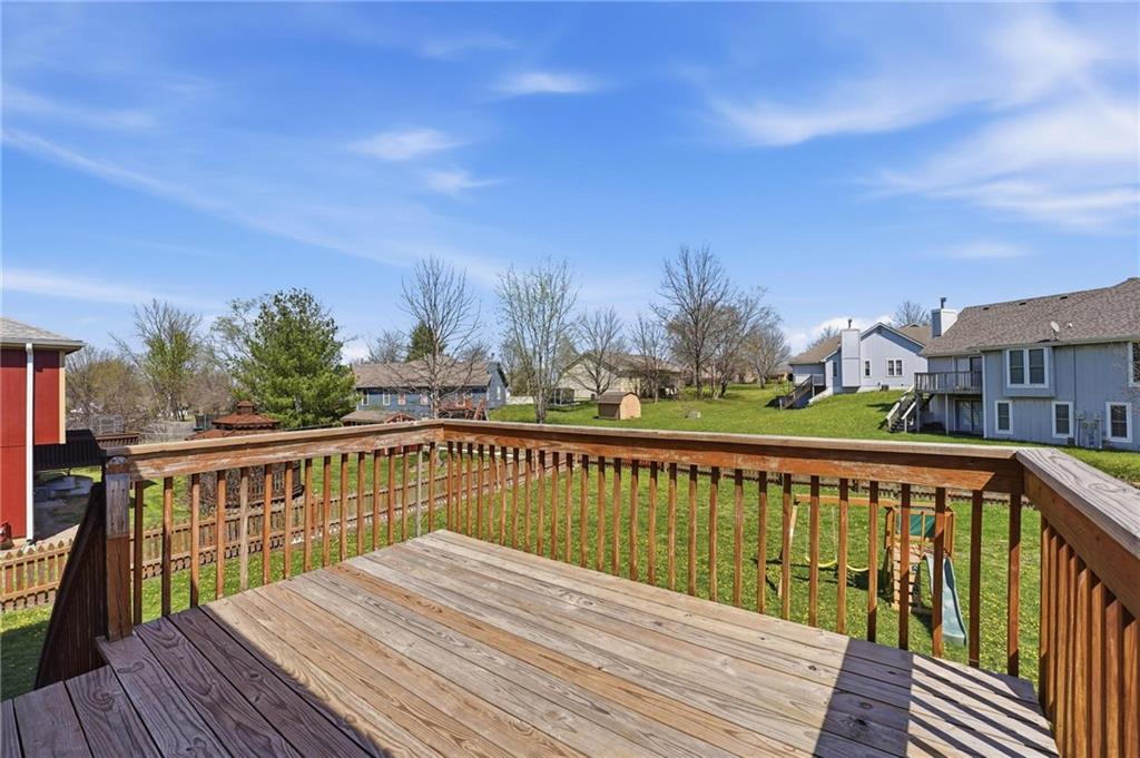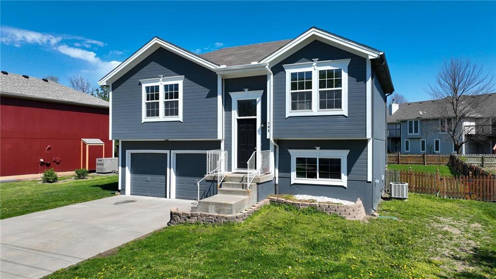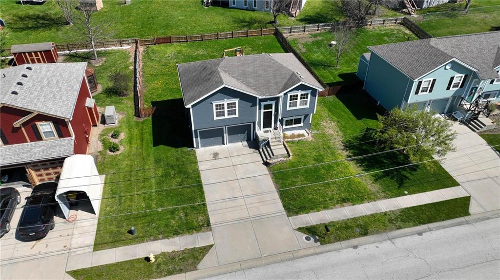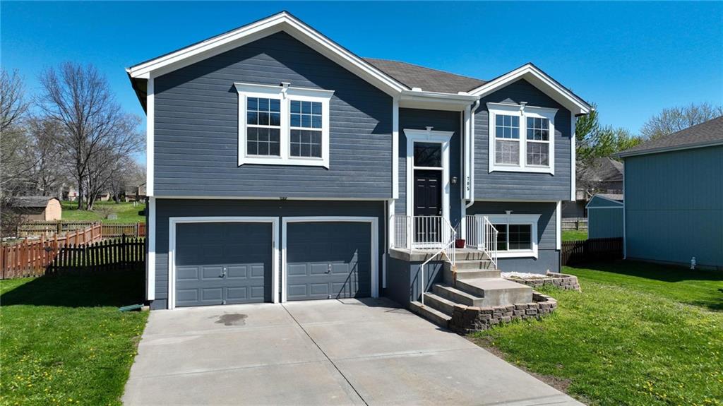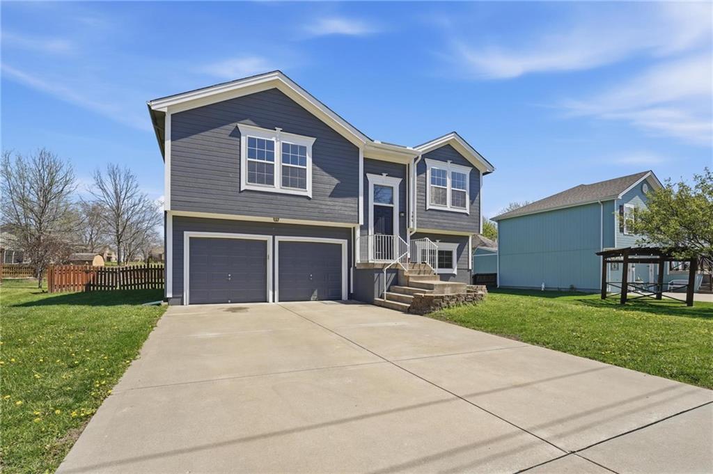 Well-maintained split-level home located in Kearney School District, offering 3 bedrooms and 2 full bathrooms with a functional and inviting layout. The main living area features updated flooring, abundant natural light, and an open flow into the eat-in kitchen, creating an ideal setting for everyday living and entertaining. The kitchen includes ample cabinetry, storage, with convenient access to the deck and backyard. The primary bedroom offers comfortable space along with a walk-in closet, while two additional bedrooms provide flexibility for family, guests, or a home office. The finished lower level includes a third bedroom and a full bathroom, perfect for added privacy or multi-generational living, along with a utility and laundry area. Step outside to enjoy the fenced backyard, ideal for pets, play, or outdoor gatherings, along with an elevated deck overlooking the yard. Additional highlights include a two-car garage and a newer water heater for added peace of mind.