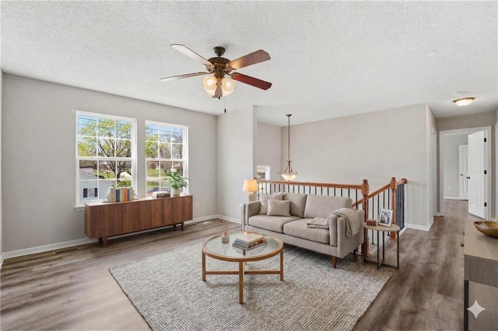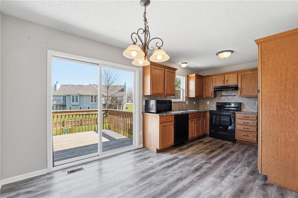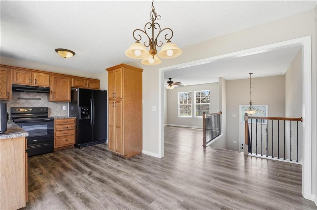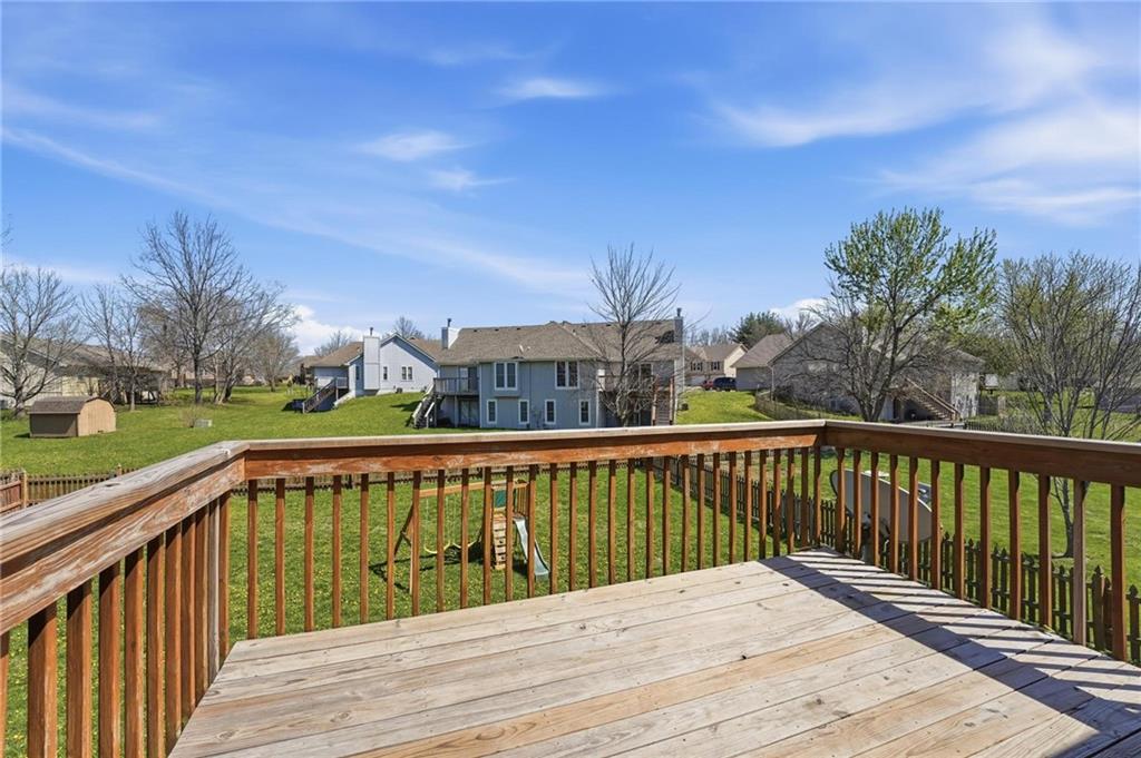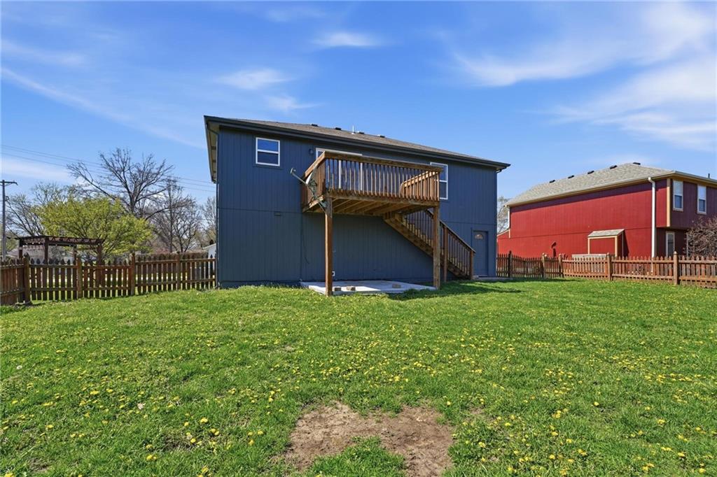 Well-maintained split-level home located in Kearney School District, offering 3 bedrooms and 2 full bathrooms with a functional and inviting layout. The main living area features updated flooring, abundant natural light, and an open flow into the eat-in kitchen, creating an ideal setting for everyday living and entertaining. The kitchen includes ample cabinetry, storage, with convenient access to the deck and backyard. The primary bedroom offers comfortable space along with a walk-in closet, while two additional bedrooms provide flexibility for family, guests, or a home office. The finished lower level includes a third bedroom and a full bathroom, perfect for added privacy or multi-generational living, along with a utility and laundry area. Step outside to enjoy the fenced backyard, ideal for pets, play, or outdoor gatherings, along with an elevated deck overlooking the yard. Additional highlights include a two-car garage and a newer water heater for added peace of mind.