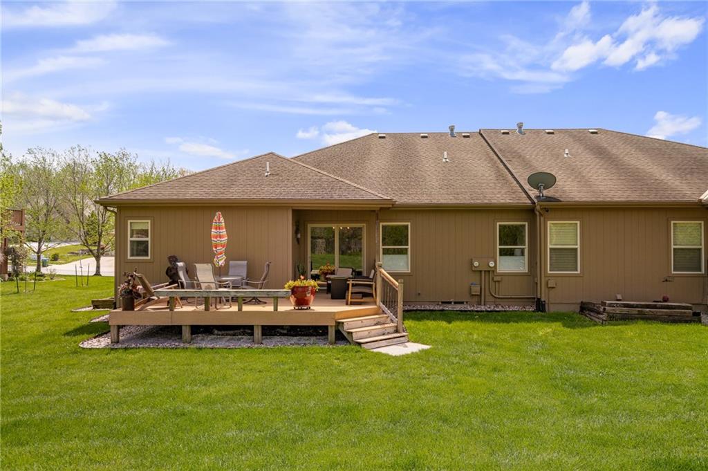 Have you been searching for that maintenance free lifestyle in one of Lee’s Summit’s most sought after areas? Look no further! This stunning 3-bedroom, 3-bath ranch home provides that one level living you've been searching for while being quietly nestled in the peaceful Country Woods neighborhood with quick access to all your favorite restaurants, shopping, parks, and the thriving downtown Lee's Summit area. Step inside and be greeted by an open floor plan with elegant arched transitions leading into the spacious living room and gourmet kitchen, featuring beautiful granite countertops and a breathtaking see-through fireplace. Rich stained hardwood floors and newer carpet create a warm, inviting atmosphere perfect for relaxing and entertaining year-round. The chef’s kitchen and generous living spaces flow seamlessly to a spacious back deck, where you can unwind and soak in the tranquil views of nature all around you. The primary suite boasts a luxurious walk-in shower, a walk in closet and a large double vanity. The main level also boasts main level laundry along with a 2nd bedroom offering plenty of room for family, guests, or that much needed home office. Stunning light fixtures, custom cabinetry, built-ins, and trim details add to the home’s refined character throughout. The full basement provides a full bedroom and bathroom, a spacious second living room and an enormous amount of unfinished space for added storage or the opportunity to expand your living space even further. Best of all, your HOA dues of just $1,285 annually cover lawn care, snow removal, building maintenance, and trash pickup giving you true lock-and-leave freedom. Perfectly positioned just minutes from an incredible variety of restaurants, boutique shopping, and parks, this home offers the ideal blend of peaceful neighborhood living and everyday convenience. Homes like this don’t last so schedule your showing today!????????????????