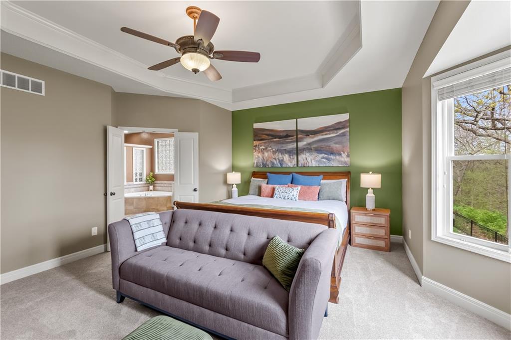 Welcome to this stunning 1.5-story home on an incredible lot with breathtaking views of green space and a scenic creek valley. Filled with natural light from dramatic picture windows, this beautifully updated home offers an open main level perfect for everyday living and entertaining. The formal dining room offers flexibility for use as a home office or formal sitting room. The main-floor primary suite is a true retreat, featuring serene backyard views, a spacious ensuite bath, and an oversized walk-in closet connected to the laundry room. Upstairs features three generously sized bedrooms, two additional bathrooms, and a large loft space. The recently finished walkout lower level is exceptional, offering an incredible rec room, cozy fireplace, custom wet bar with two beverage fridges and a dishwasher, an upgraded full bath with rainfall shower, an additional bedroom, and ample unfinished storage. Thoughtful extras include high-end theater speakers, dimmable lighting w/Nightlight feature, and smart home upgrades throughout. Step outside to your private backyard oasis with a level fenced yard overlooking peaceful green space. The large deck and expansive patio are perfect for relaxing or entertaining. Major updates include a high-efficiency HVAC (2021), upgraded 50-year roof with oversized gutters and gutter guards (2024), new water heater (2025), new carpet (2026), full interior repaint, updated faucets, engineered retaining wall, new fence, Wi-Fi sprinkler system, Ecobee thermostat, air purification system, and more—making this home truly move-in ready. Forest View offers one of the area’s most photographed waterfalls, a huge zero-entry pool, a water park, a sport court, sand volleyball, trails, a playground, picnic and grilling areas and easy access to Cedar Niles Park with miles of biking, hiking, and walking trails. This home truly has it all!