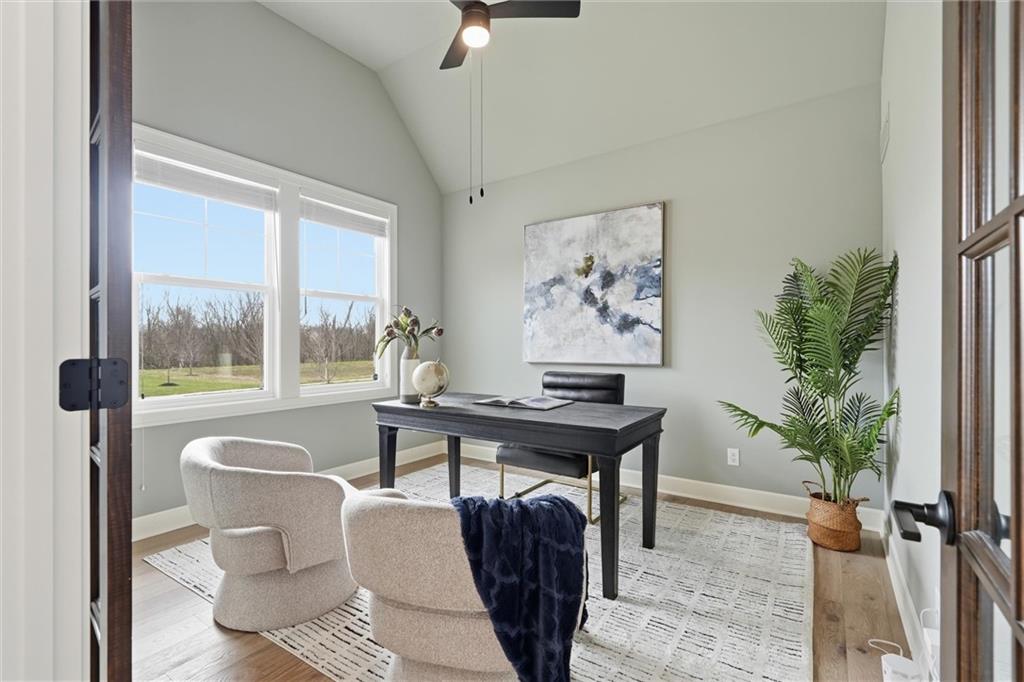 Meticulously maintained, like-new home that outshines new construction, offering a thoughtful open floor plan and seamless indoor-outdoor flow on a premium lot with a large private backyard and wooded views. The main level features a grand two-story entry, spacious living room, private office, and a gourmet kitchen with floor-to-ceiling white oak cabinetry and upgraded gas range. The main-level primary suite offers a spacious layout with convenient access to the laundry room. The upper level includes three generously sized bedrooms, each with walk-in closets and en suite baths. The finished lower level features a guest bedroom, full bath, wet bar, flex room/home gym, and ample storage. Enjoy abundant natural light throughout, along with beautiful sunset views from the backyard overlooking wooded green space. Move-in ready with convenient access to major commuting routes and located within the highly rated Blue Valley School District. Motivated sellers—come see this beautiful home and make an offer!