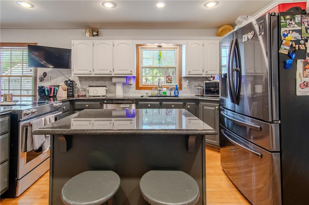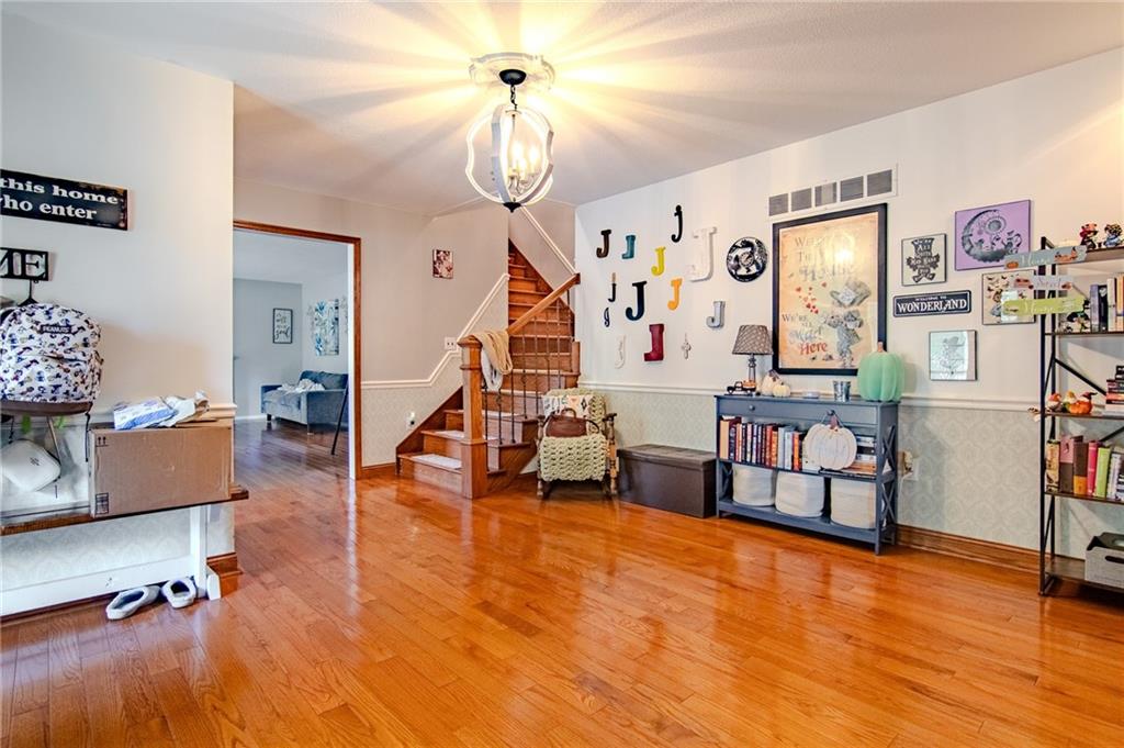 Step into this grand foyer and you will be impressed by the open living area this home provides. There are large living areas off each side of the foyer and a beautiful staircase leading upstairs. There are two dining areas (one off of each side of the kitchen). There is an additional family room on the main level as well. This home does not have any carpet. Four bedrooms, a huge bathroom, and a laundry area are upstairs. The primary bedroom is large with an incredible walk-in closet. Additional living space has been started in the basement. There is an oversized two car garage attached to the home and an additional two car detached garage. Solar panels are a new addition to this home, as well as a privacy fenced backyard and whole home water filtration system. This home sits on a small hill on the corner lot of a popular cul-de-sac and offers plenty of off-street parking for those days you feel like entertaining.