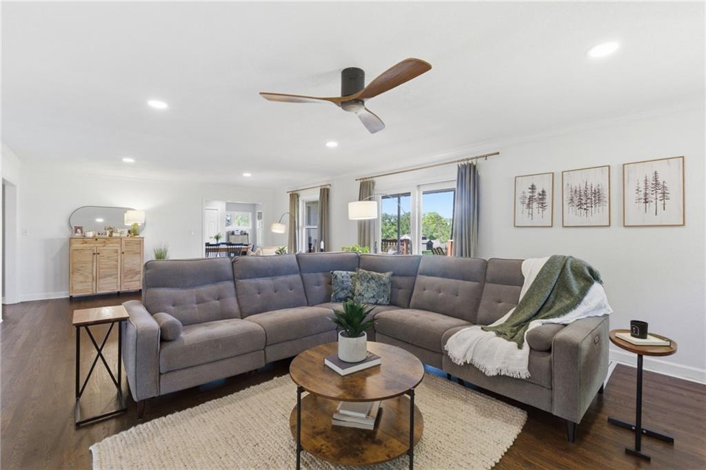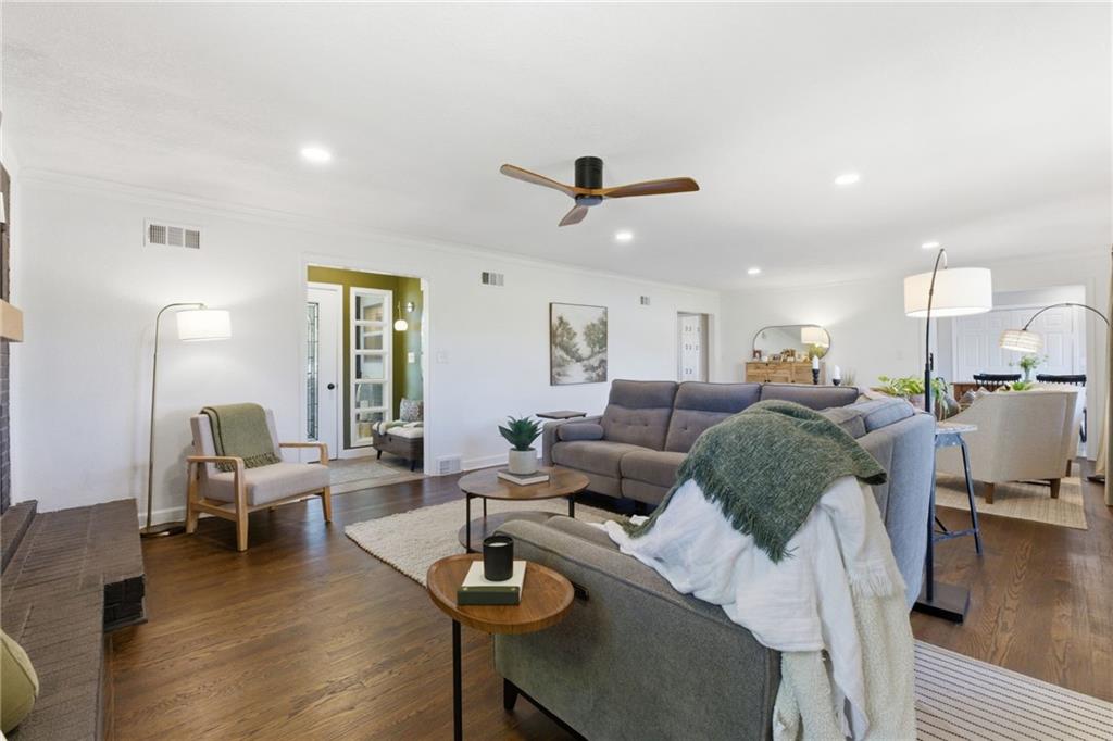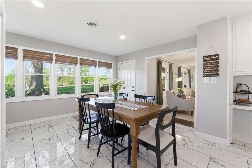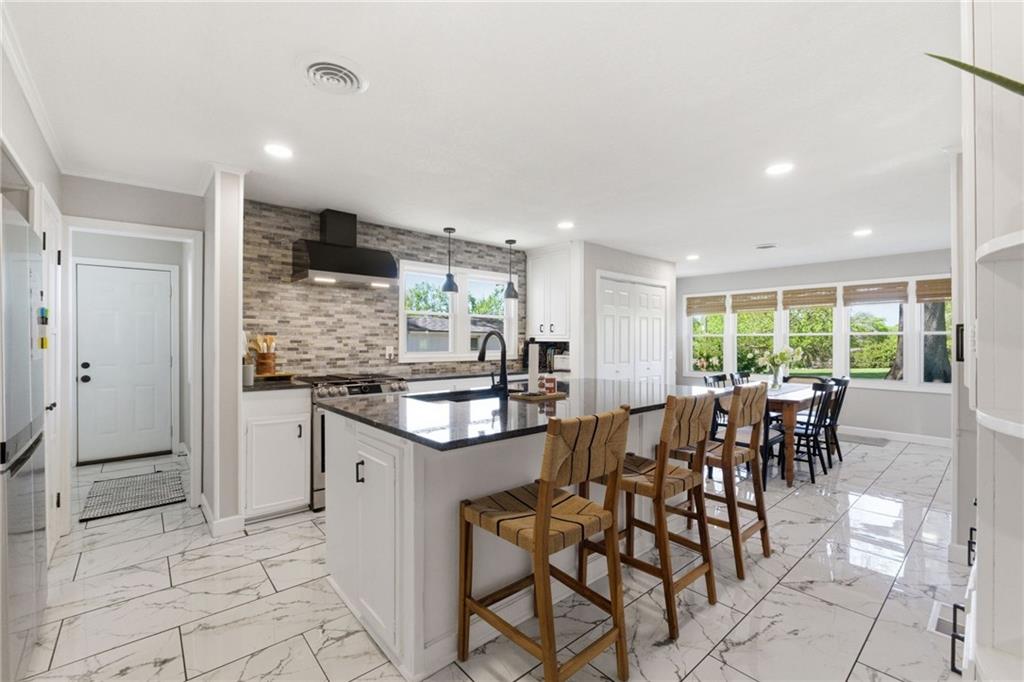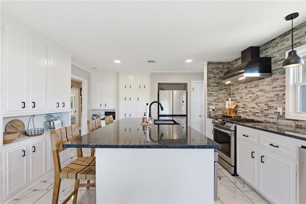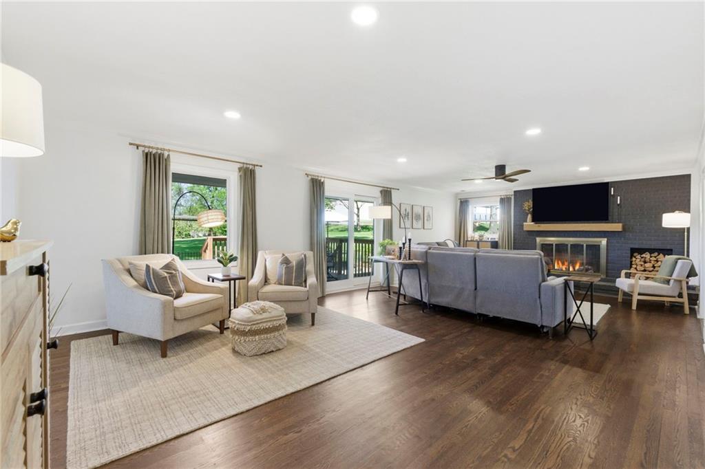A rare find that doesn’t come around often, nearly 1.5 acres with an expansive ranch that gives you space, privacy, and a layout that just works! Set far back from the street with a circle drive and inviting front courtyard, it immediately feels quiet and tucked away with no close neighbors in sight. Each bedroom has its own dedicated full bathroom, a hard to find feature that makes this home stand out right away. The kitchen has been completely redone and is truly the heart of the home, featuring custom cabinetry, an oversized island, updated countertops, tile and backsplash, plus all new appliances including a gas range, drawer microwave, and hood, all opening into a light filled main living space. Natural light pours in and there is no shortage of room to spread out with multiple living areas throughout. Step outside and you have three separate outdoor living spaces ready for spring and summer, including a deck and patio, along with newly added evergreen trees that create even more privacy! Nearly every major system has been updated including roof, HVAC, furnace, windows, and deck all in 2022, along with thoughtful upgrades like new lighting, interior and exterior paint, electrical and plumbing updates, rebuilt sheds, landscaped circle drive, and a fenced front courtyard. All of this just minutes from shopping, restaurants, highways, parks, and the elementary school, giving you space to breathe while still being close to everything!