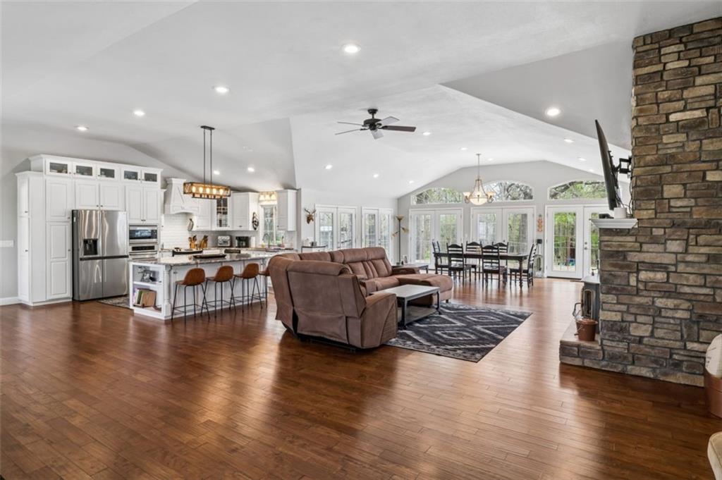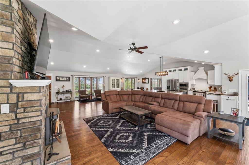 Welcome to 14441 Highway U, Cross Timbers, MO 65634, a beautifully maintained 3-bedroom, 3-bath home with over 3,700 sq ft, perfectly positioned on 20 scenic acres of mixed open land and mature woods. This is where modern comfort meets rural independence. From the moment you arrive, the oversized driveway and attached two-car garage with workshop space set the tone for functionality and scale. Step inside to discover a bright, open layout featuring quartz countertops, stainless steel appliances, and warm hardwood flooring, all anchored by a cozy living room fireplace that creates the perfect gathering space. The heart of the home flows seamlessly into a stunning dining area wrapped in windows, flooding the space with natural light and offering uninterrupted views of your private land. Just beyond, step out onto the expansive deck, where an above-ground pool with electric heater and outdoor entertaining space create the ultimate setting for summer nights and weekend gatherings. The newly finished basement (2023) adds incredible flexibility with an additional bedroom and full bathroom, making it ideal for guests, extended family, or multi-generational living. Outside is where this property truly separates itself. Enjoy your own private pond, wooded acreage with established trails for ATV riding and hiking, and two deer stands, making this a dream setup for hunting and outdoor enthusiasts. A dedicated shooting range further enhances the recreational appeal. For those seeking versatility and income potential, the 12x36 Amish-built log cabin with heat, AC, and pellet stove offers the perfect guest retreat, Airbnb opportunity, or private office space. Located on a paved road in the peaceful Cross Timbers area, this property offers the privacy buyers crave without sacrificing accessibility. If you’ve been searching for a Missouri acreage home with land, privacy, hunting, and modern upgrades. This is it. Optionally comes fully furnished.