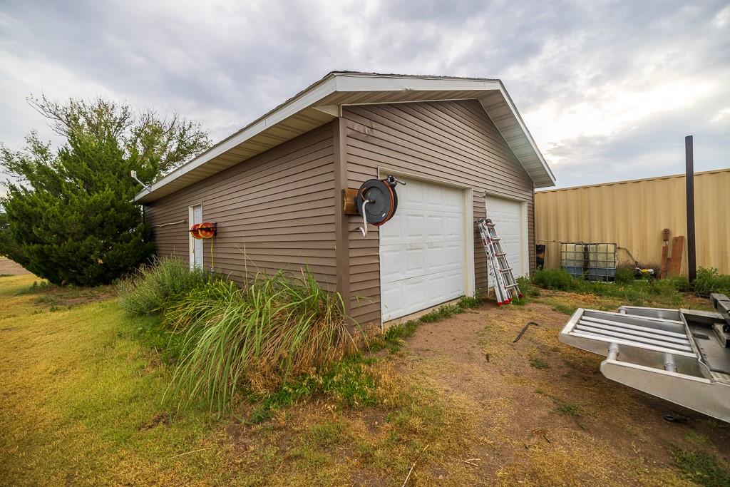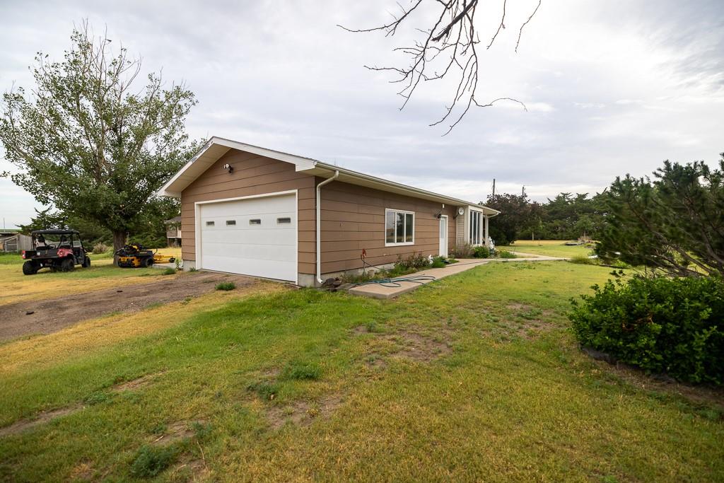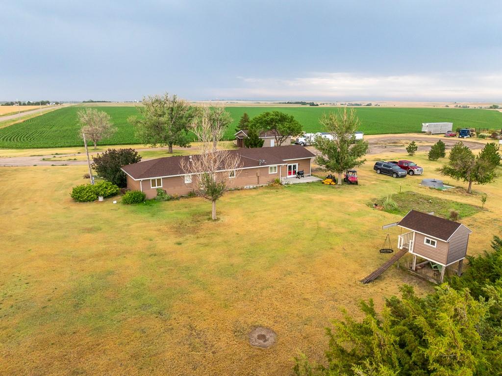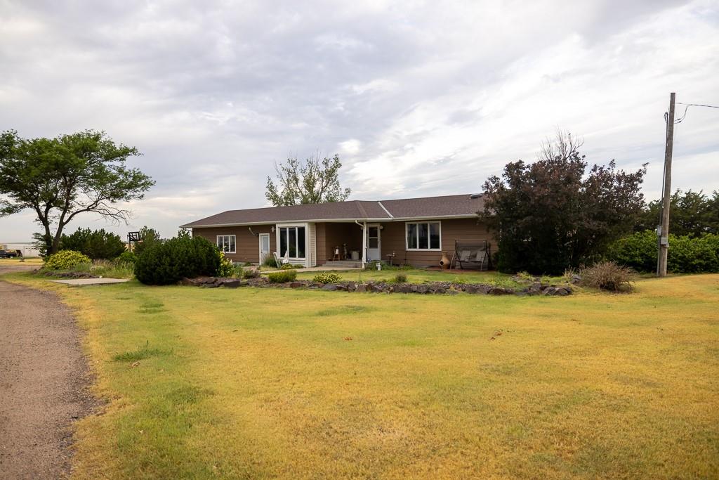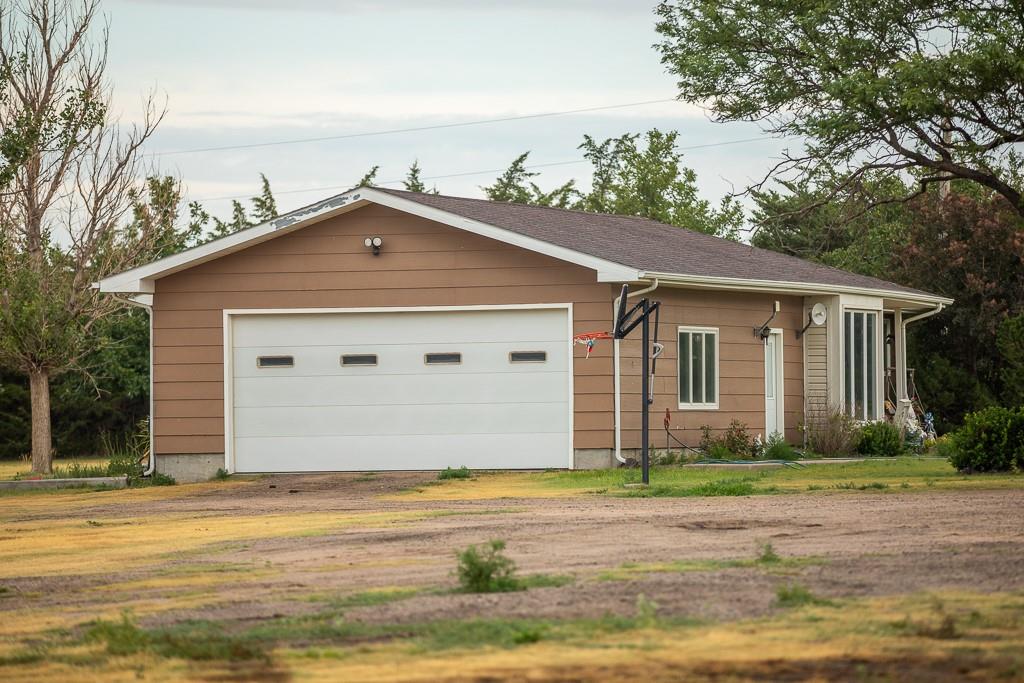 This beautiful 48 +/- acre property brings a lot to the table! Located just west of the golf course outside of Hoxie, KS, it features a sizable 5 bed, 2 bath ranch farmhouse. You can watch the sun rise from your front porch. The main floor includes 2 bedrooms, 1 bathroom, a generous living area and kitchen, large dining room, and a laundry/mudroom off of the oversized 2 car garage. The full finished basement includes 3 bedrooms, a full bathroom, utility closet, a large living space, and lots of storage. The property also includes an additional 864 square foot outbuilding that is half garage and half climate controlled entertaining space, perfect for a mancave. A chicken coop and children's playhouse make up the remaining structures on the property. The property itself is beautiful and loaded with opportunity. A large established windbreak surrounds the north and west sides of the home, offering the much needed protection from the Kansas winds. Additionally, oak and cottonwood trees are strategically placed throughout the farm, giving it a charming, park-like feel. There are several water hydrants sprinkled throughout the 5 acre homesite that would allow several locations for a large garden. The remaining 43 acres are made up of fenced grass that are perfect for your horses, steers, or other livestock options. There’s a good well and heated water tank just off of the corral.