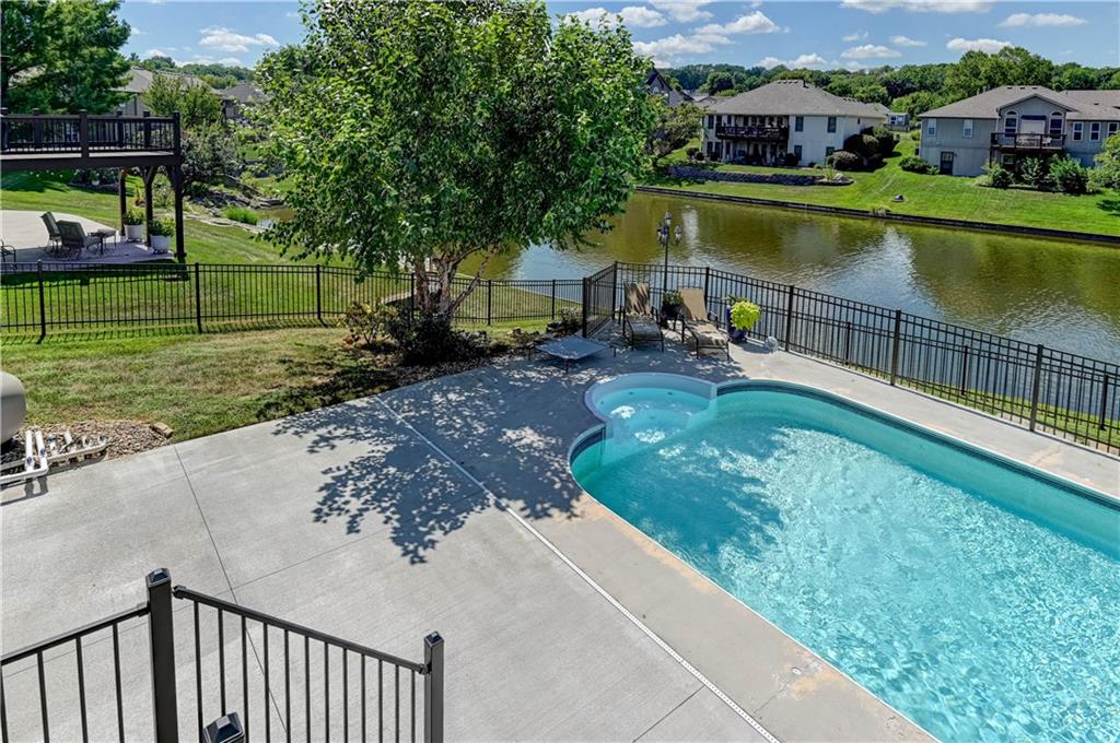 Stunning Lakefront Retreat with Inground Pool & Finished Walk-Out Basement. Welcome to this beautifully maintained 4-bedroom, 3-full-bath lakefront home offering the perfect blend of comfort, style, and resort-like living. Nestled beside a fully stocked private lake, this property delivers breathtaking views and everyday relaxation right in your backyard. The main living areas are light-filled and welcoming, complemented by all newer appliances (less than 2 years old) throughout the home. The spacious layout flows seamlessly into a finished walk-out basement, ideal for entertaining or extended living space. Enjoy hosting guests at the custom wet bar featuring an ice maker, making gatherings effortless and memorable. Step outside to your own private oasis—an inground pool, fenced backyard, and newer deck and concrete (less than 2 years old) create the perfect setting for summer fun or serene evenings overlooking the water. An automatic sprinkler system keeps the landscaping lush and low-maintenance. Major updates add peace of mind, including a brand-new roof in 2025. With lake access just steps away, exceptional outdoor amenities, and thoughtful upgrades throughout, this home is a rare opportunity for luxury lakefront living.
