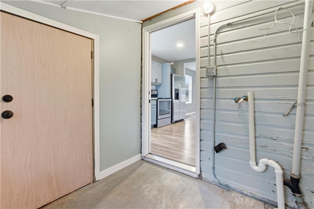 Cute bungalow on a large, fenced corner lot! Large living room space with big bright windows overlook the covered, spacious front porch. Renovated throughout, this kitchen has plenty of counter/cabinet space with updated appliances and counters, laminate floors! Separate laundry room off the kitchen. Good sized, carpeted bedrooms with attached full bath off the primary bedroom. Gorgeous shower! Hall bath with standup shower off the living room. HUGE yard with almost .5 acre that goes beyond the tree line. Clear it and you can have even more space. Fenced front yard gives room for the pets to roam away from the street. Close to highway access!