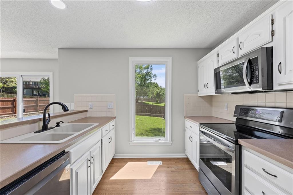 This house has been redone top to bottom! Move in ready to relax and enjoy. With 4 BR, 2.2 baths, 2 living spaces and a fenced back yard, what more could you need? Main level room can be used as a Dining room or Office. New paint inside and out. New windows and flooring. Kitchens and baths have been up-dated. This house has 2 HVAC units for your comfort. Easy access to K7 with great shopping and recreation areas nearby. In the award-winning De Soto school district.